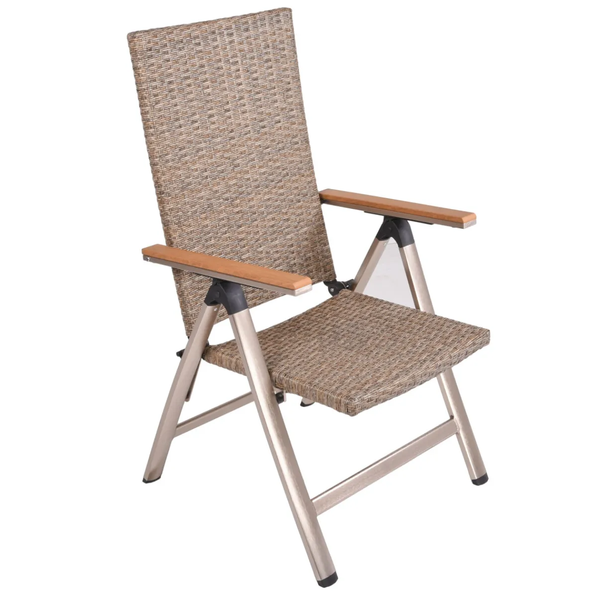 Genießen Sie die warmen Sonnenstrahlen und entspannte Momente mit der Tischgruppe Florence 3, die Ihren Garten in eine Oase der Gemütlichkeit verwandelt. Dieses hochwertige Gartenmöbel-Set vereint zeitloses Design mit praktischen Funktionen und bietet Ihnen alles, was Sie für gesellige Stunden im Freien brauchen. Mit einem robusten Aluminiumgestell und einer eleganten braunen Farbgebung fügt sich die Tischgruppe harmonisch in jede Umgebung ein. Die klappbaren Hochlehner sorgen nicht nur für Komfort, sondern auch für eine platzsparende Lagerung.