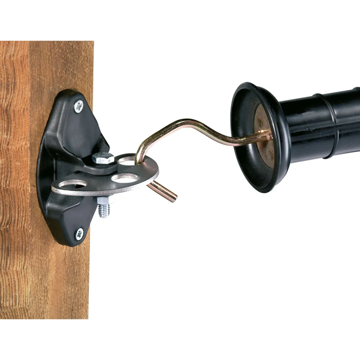 Der Torgriffisolator Vario in Schwarz eignet sich ideal für alle Kunden, die einen stabilen und sicheren Weidezaun benötigen. Egal ob Pferde, Rinder oder Schafe – dieser Isolator hält jedem Tier stand.