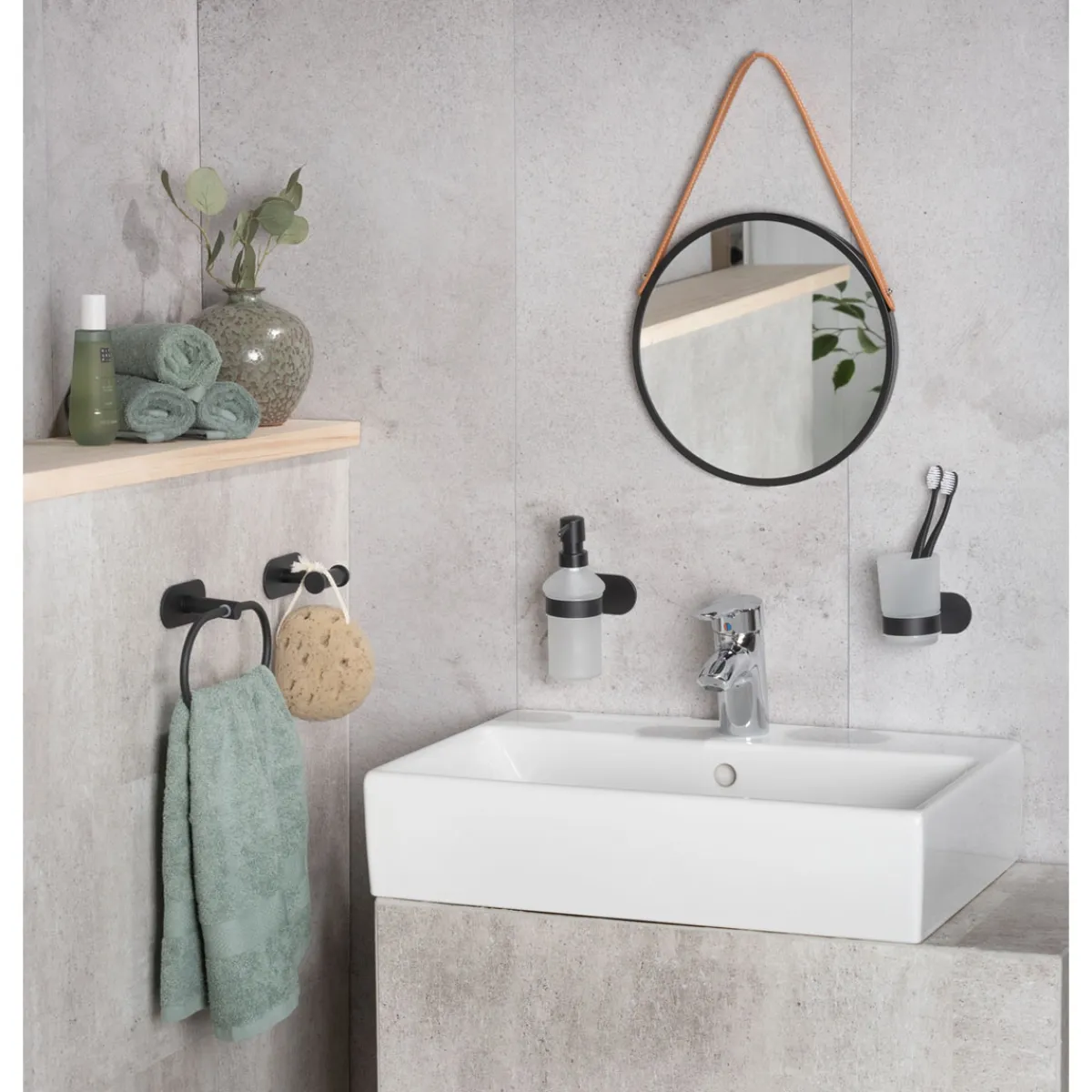 Der Wenko Turbo-Loc Edelstahl Handtuchring Orea Black Matt ist die perfekte Lösung für alle, die ihr Badezimmer stilvoll und praktisch einrichten möchten. Der Handtuchhalter besticht durch sein modernes Design in mattem Schwarz und lässt sich ganz einfach ohne Bohren anbringen.