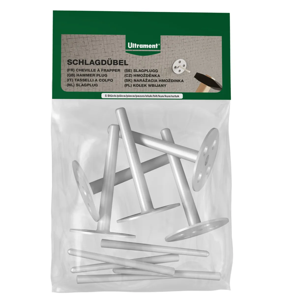 Die Ultrament Schlagdübel bieten eine einfache Möglichkeit zur sicheren Befestigung Ihrer Do IT Bauplatten. Dank ihrer hochwertigen Materialien sind sie korrosionsbeständig und schlagfest. Mit einer Gesamtstückzahl von 5 Stück pro Beutel haben Sie immer genug Dübel zur Hand. Ob im Innen- oder Feuchtraum, Wand oder Boden – die Ultrament Schlagdübel bieten Ihnen einen sicheren Halt und eine einfache Anwendung.