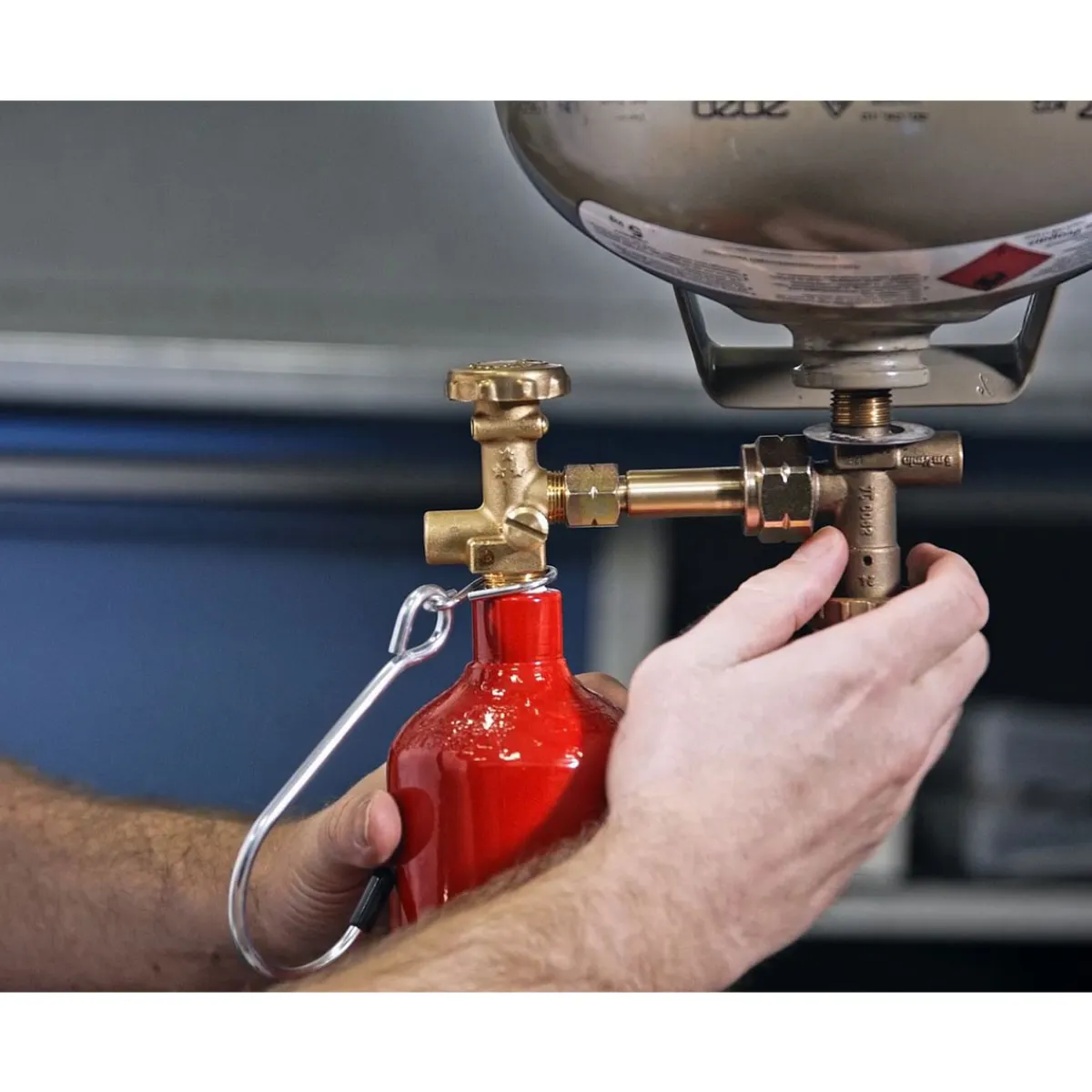 Mit dem CFH Umfüllstutzen MS 754 wird das Selbstabfüllen von 1L Propan-Kleinflaschen aus 3,5 oder 11 kg Propangasflaschen zum Kinderspiel.