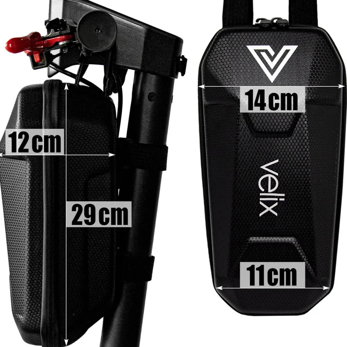 Die Materialzusammensetzung ist besonders robust und wetterbeständig. Ihre Wertgegenstände bleiben sicher und trocken in der Elektroroller-Tasche verstaut, selbst bei einem plötzlichen Regenschauer.
