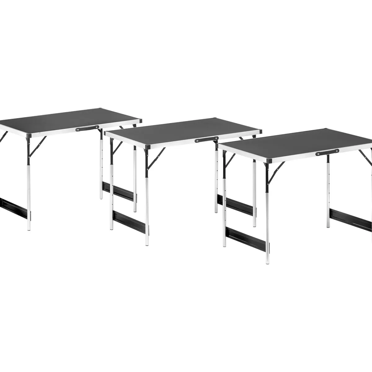 Der Vincent Mehrzwecktisch überzeugt durch seine vielseitigen Einsatzmöglichkeiten und seine robuste Verarbeitung. Ob als großer Tisch oder in Form von drei Einzelteilen – dieser Tisch bietet Ihnen maximale Flexibilität und passt sich jeder Situation an. Mit einer maximalen Traglast von je 25 kg können Sie auch schwere Gegenstände problemlos abstellen. Das leichte Aluminium-Material sorgt dafür, dass der Tisch einfach zu transportieren und zu verstauen ist. Bestellen Sie jetzt den Vincent Mehrzwecktisch und machen Sie Ihr Zuhause noch flexibler!