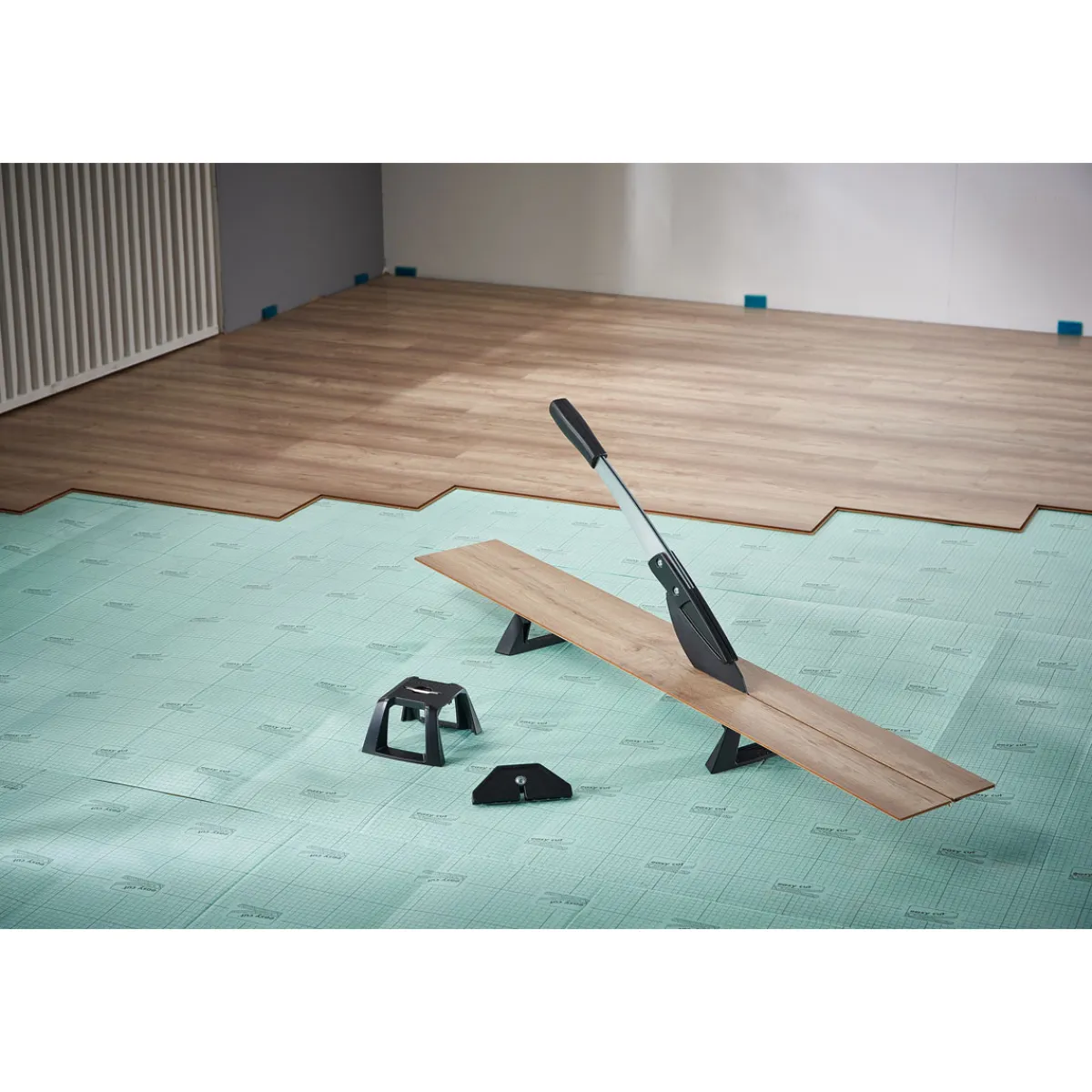 Der Wolfcraft Vinyl- und Laminatschneider VLC 800 ist ein unverzichtbares Werkzeug für jeden Heimwerker oder Handwerker im Bauwesen. Mit seiner hohen Präzision ermöglicht er schnelles, sicheres Schneiden aller Arten von Laminaten sowie selbstklebender- oder Klickvinylpaneele. Die Ausstattung mit Materialauflage, gezahnten Schneidleisten sowie Niederhalterfunktion sorgt für eine einfache Handhabung des Geräts. Durch die rutschhemmenden Fußpuffer steht der Schneider sicher auf jedem Untergrund.