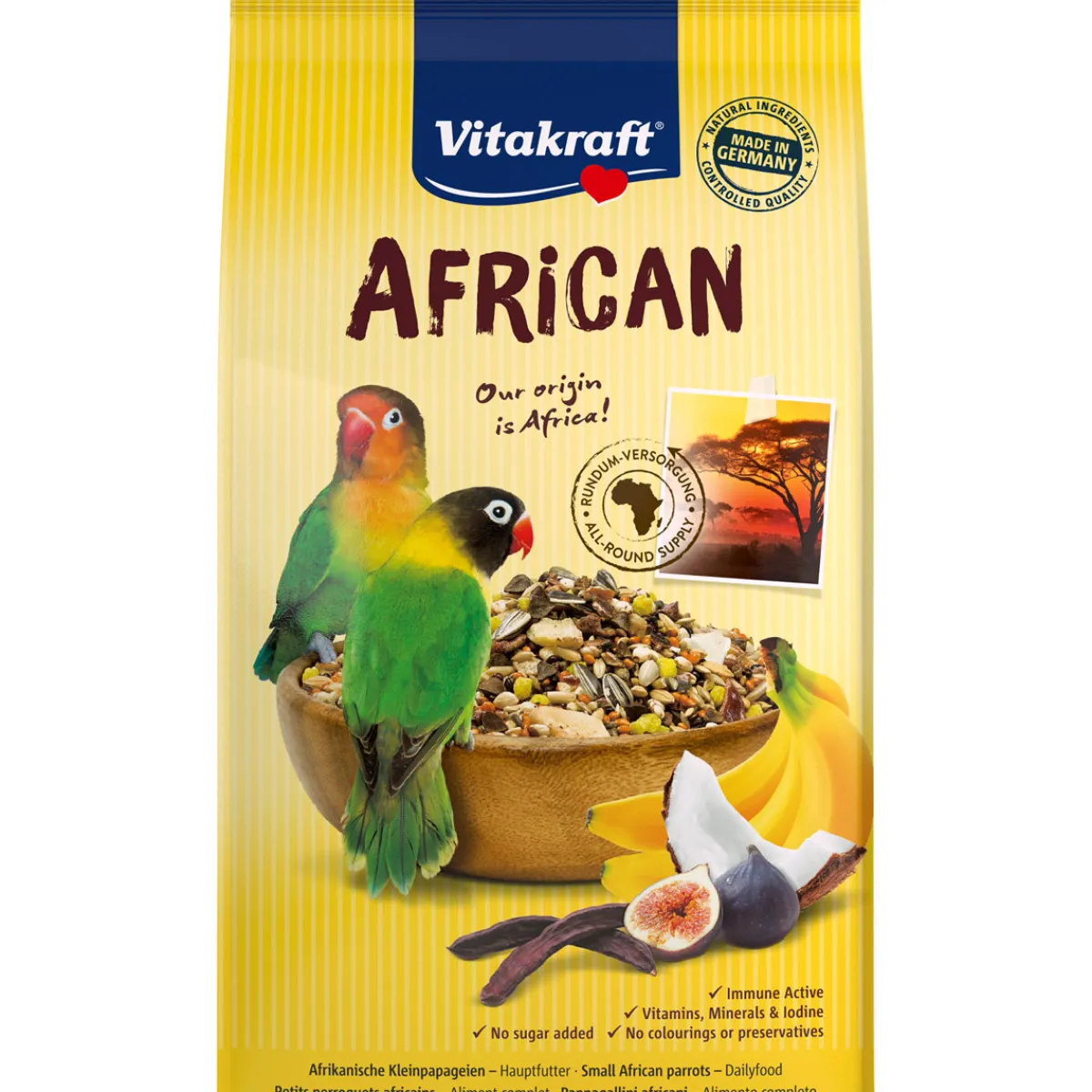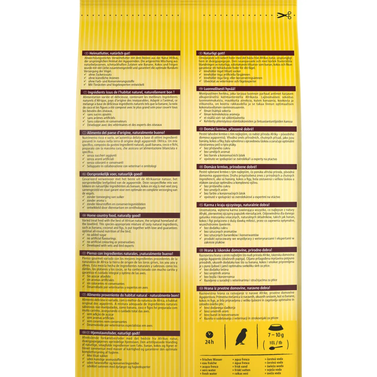 African ist ein abwechslungsreiches Hauptfutter mit dem Besten aus der Natur Afrikas, der ursprünglichen Heimat der Agaporniden. Die artgerechte Mischung aus naturbelassenen, schmackhaften Zutaten wie Banane, Kokos und Feigen wurde mit viel Liebe zusammengestellt und sorgt für eine optimale Rundum-Versorgung der Vögel. Neben wichtigen Vitaminen enthält African auch alle weiteren Nähr- und Aufbaustoffe, die Agaporniden für ein gesundes Leben brauchen. Wertvolle Magenkiesel und hochwertige Beta-Glucane ergänzen die Rezeptur des Naturfutters. Heimatfutter, natürlich gut!