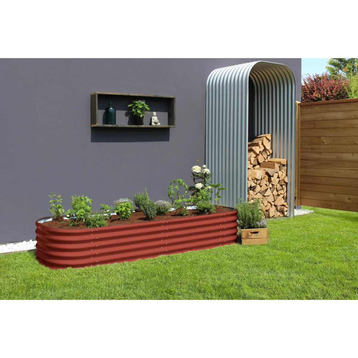 Mit der Vitavia Erweiterung stretched 401 in rubin erweitern Sie Ihr Hochbeet um 1,33 m² Nutzfläche und schaffen Platz für noch mehr Pflanzen. Das ovale Design und die rubinrote Beschichtung machen das Hochbeet zu einem echten Hingucker in Ihrem Garten oder auf Ihrer Terrasse.