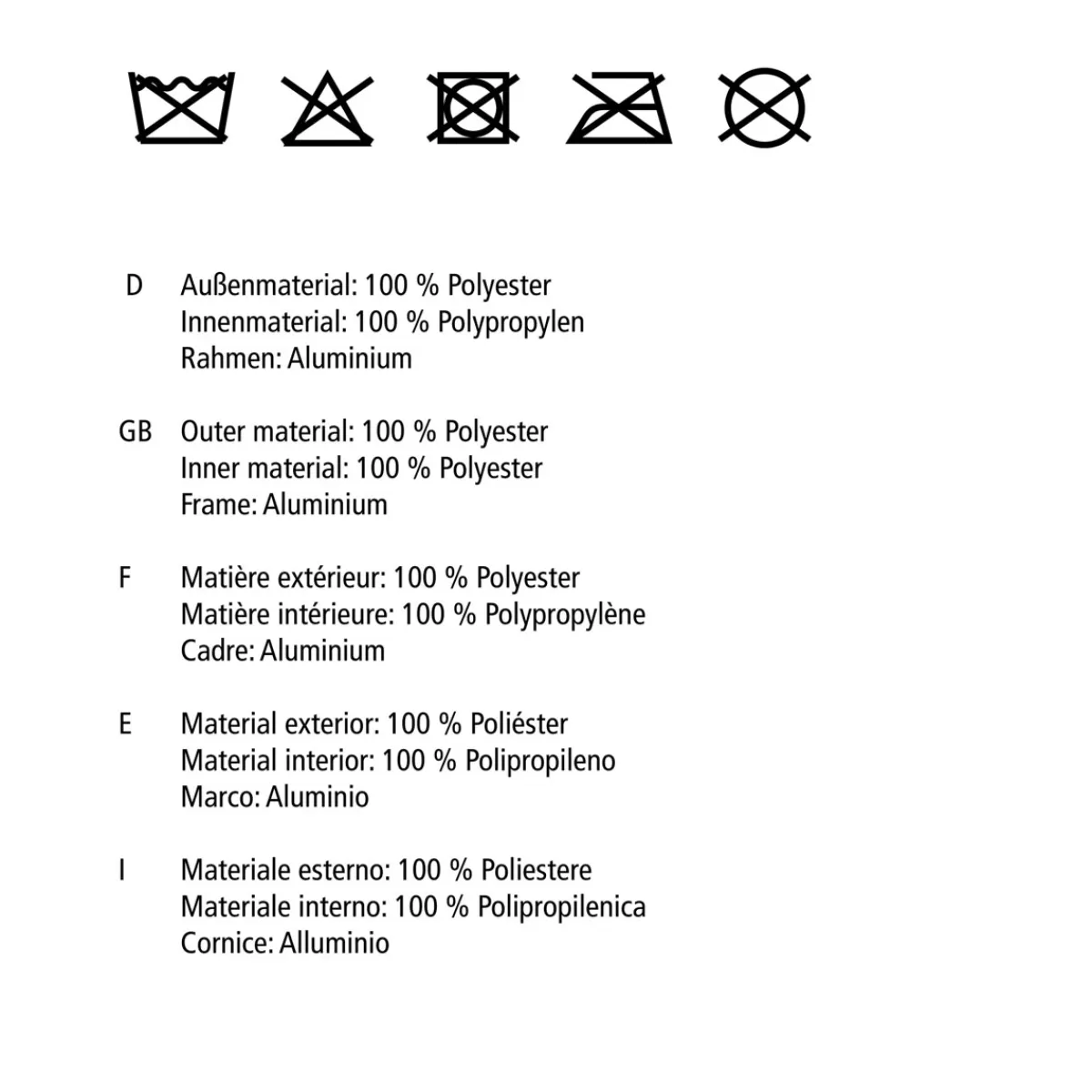 - Außenmaterial: 100 % Polyester, Innenmaterial: 100 % Polypropylen