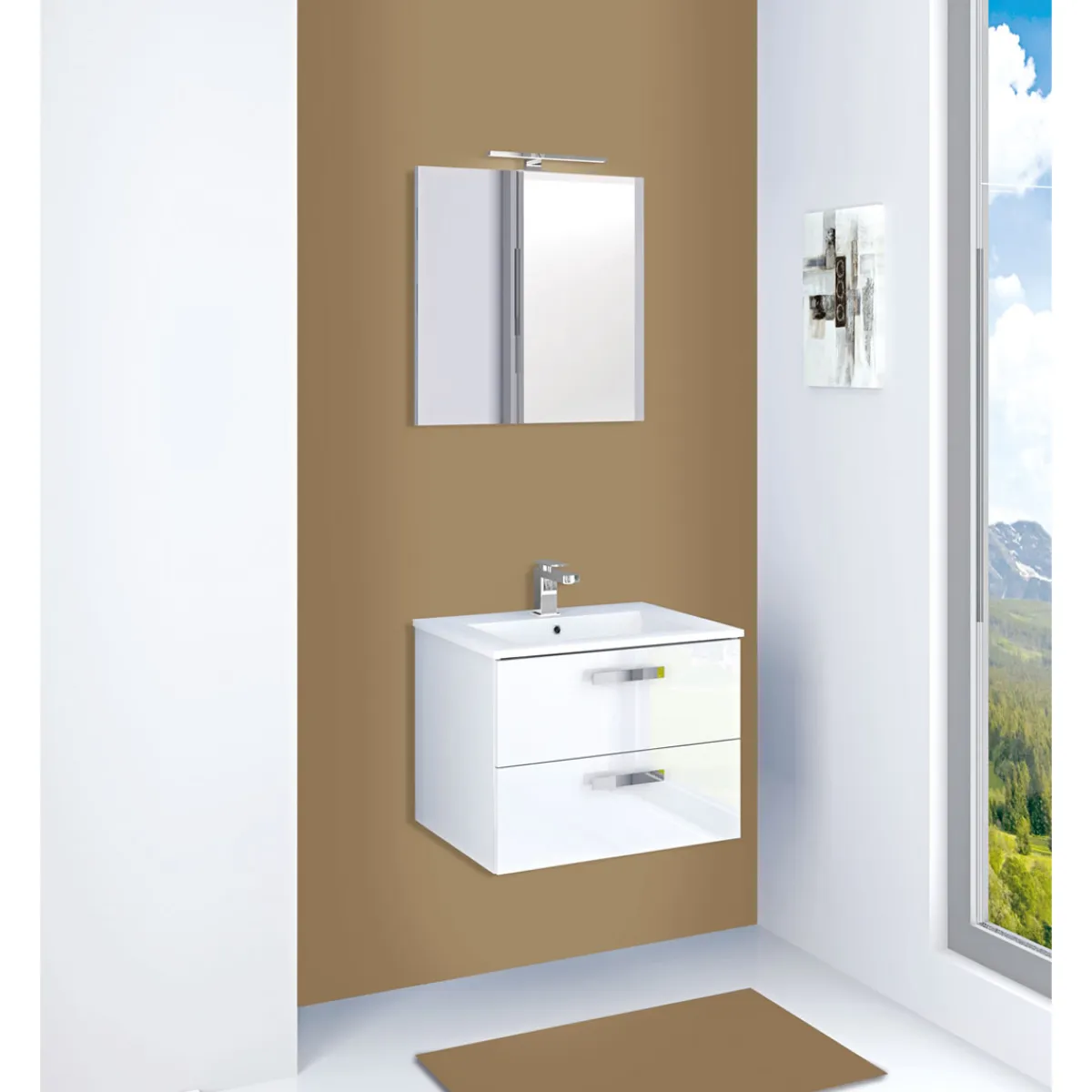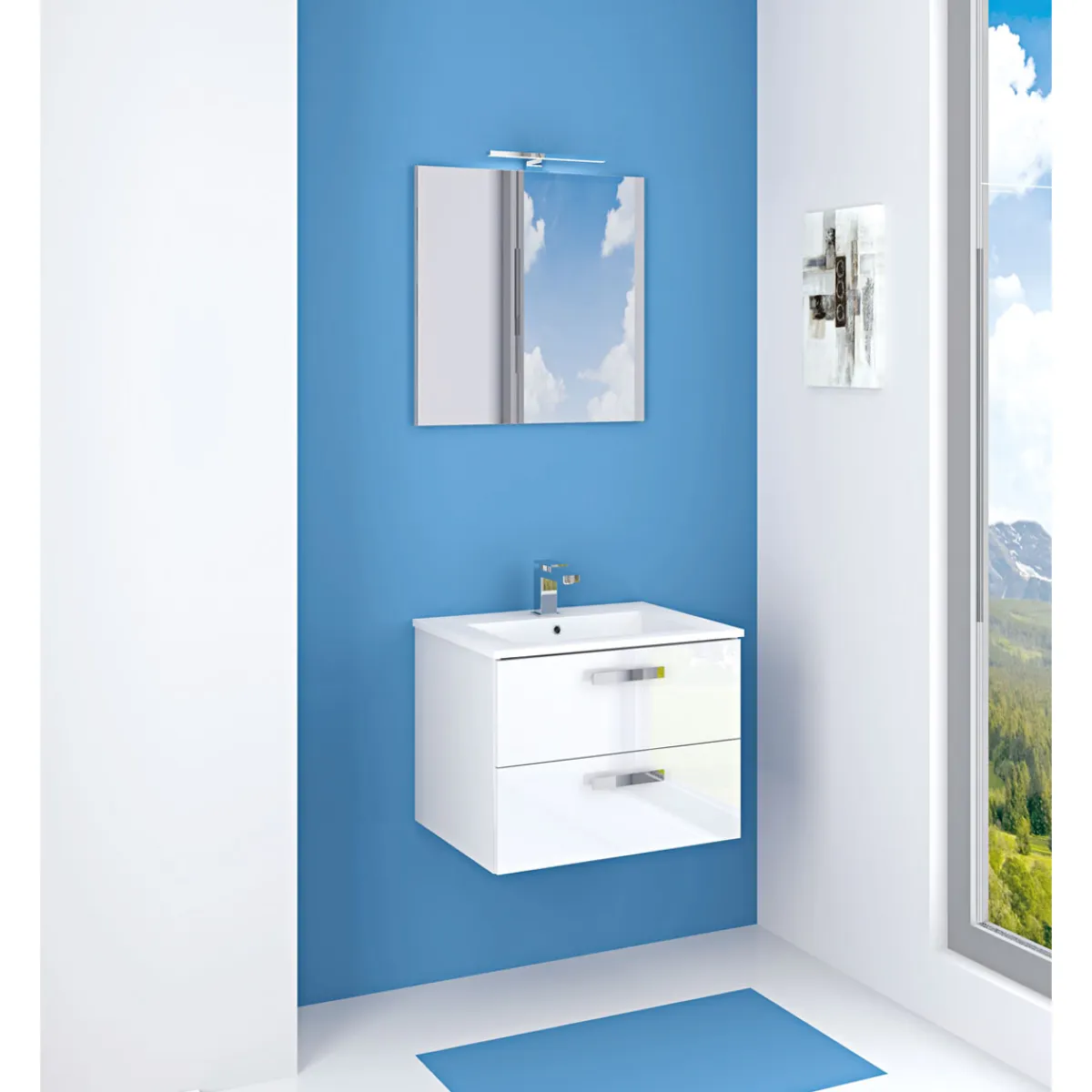 Waschplatz Verona inkl Spiegel mit Beleuchtung weiß Hochglanz