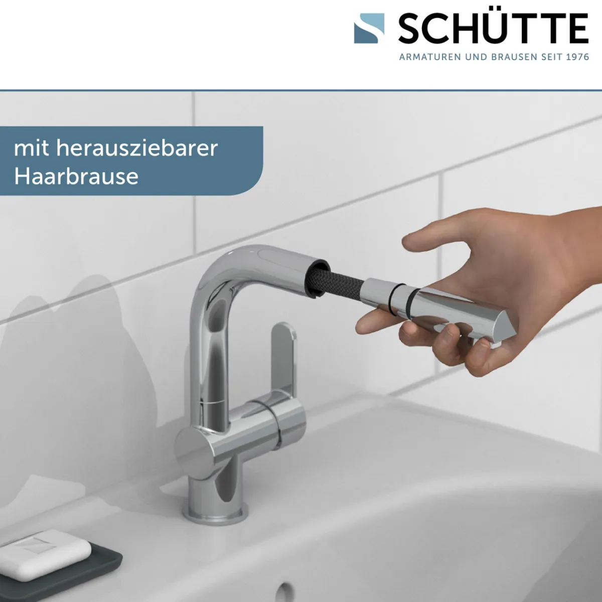 - Praktische Waschtischarmatur mit herausziehbarer Brause für das schnelle Haarewaschen zwischendurch