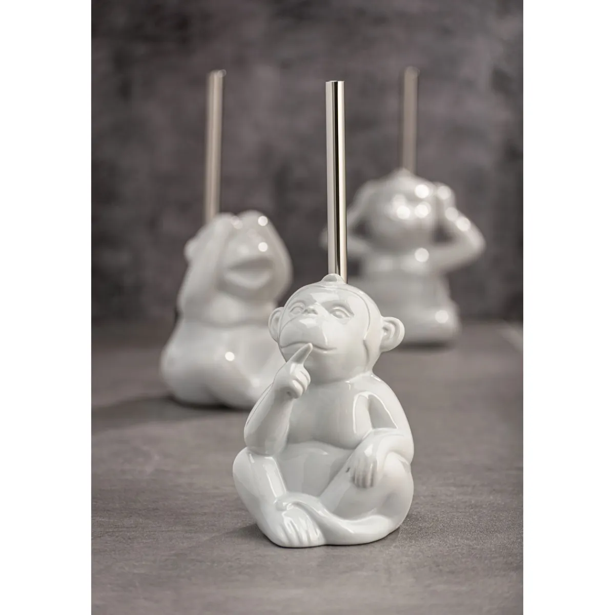 Mit der Wenko WC-Garnitur Monkey Quiet in Weiß holen Sie sich ein niedliches Design-Element ins Badezimmer. Der runde Affe auf dem Standmodell sorgt für gute Laune und ist zugleich praktisch.