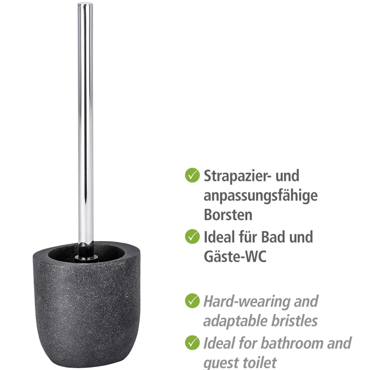 Die Wenko WC-Garnitur Puro Anthrazit eignet sich perfekt für alleKunden, die auf der Suche nach einer stilvollen und funktionalen Ergänzung für ihr Badezimmer sind. Sie passt zu jedem Einrichtungsstil und bietet eine praktische Lösung zur hygienischen Reinigung Ihres WCs.