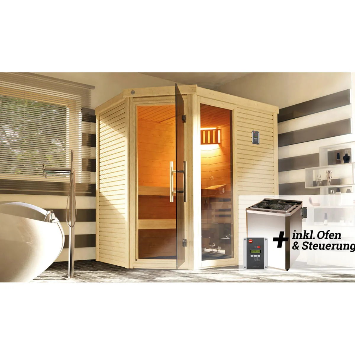 Weka Design-Saunahaus Kuopio Sparset 9,0 kW Bio S inkl analoger Steuerung