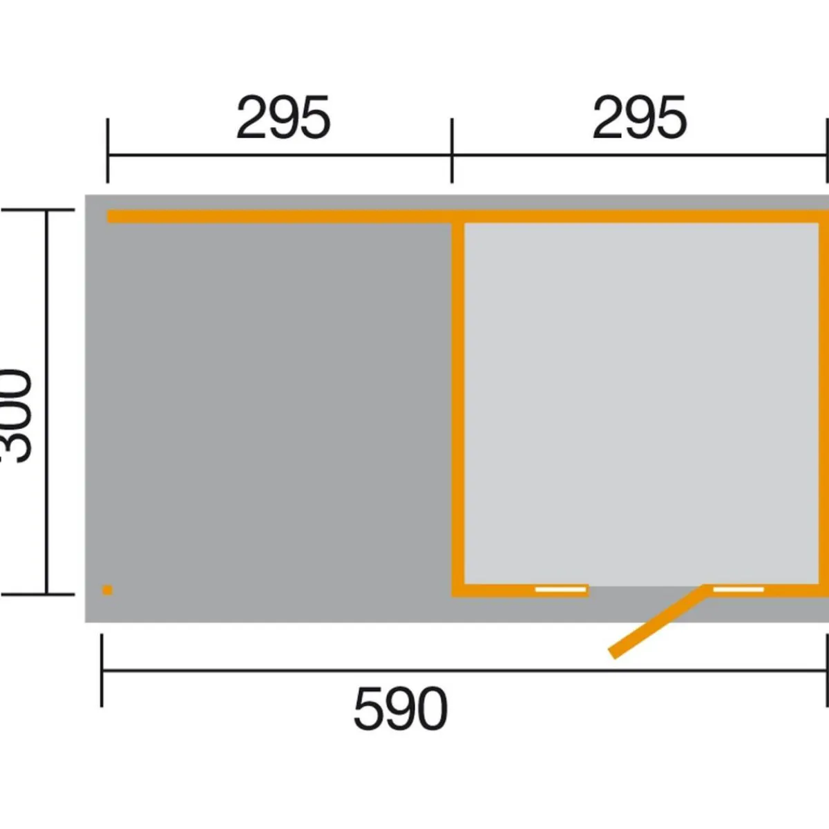 - – Außentiefe inkl. Dachüberstand: 342 cm