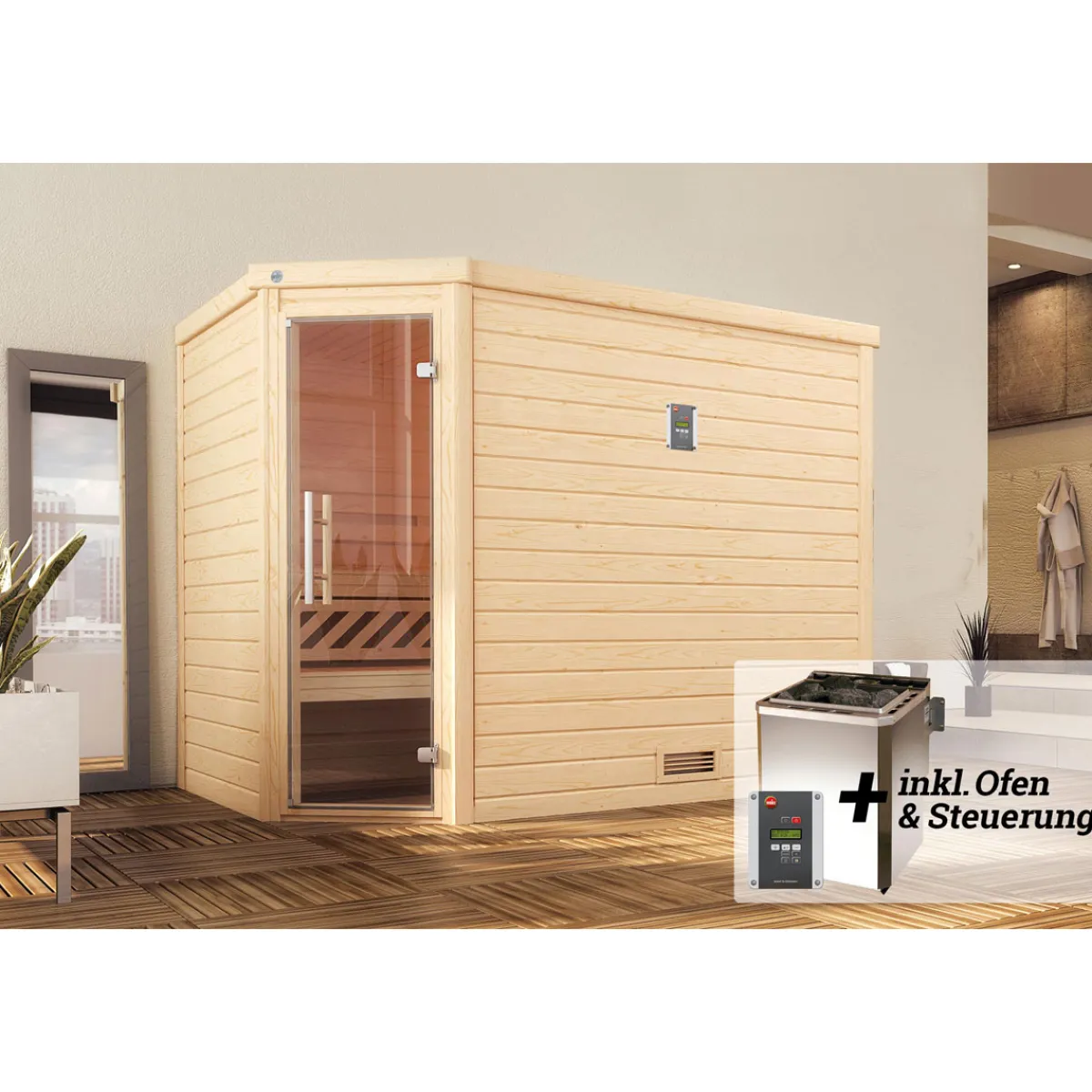 Produktdetails des Weka Premium Massivholz-Sauna Turku Größe 3 Sparset