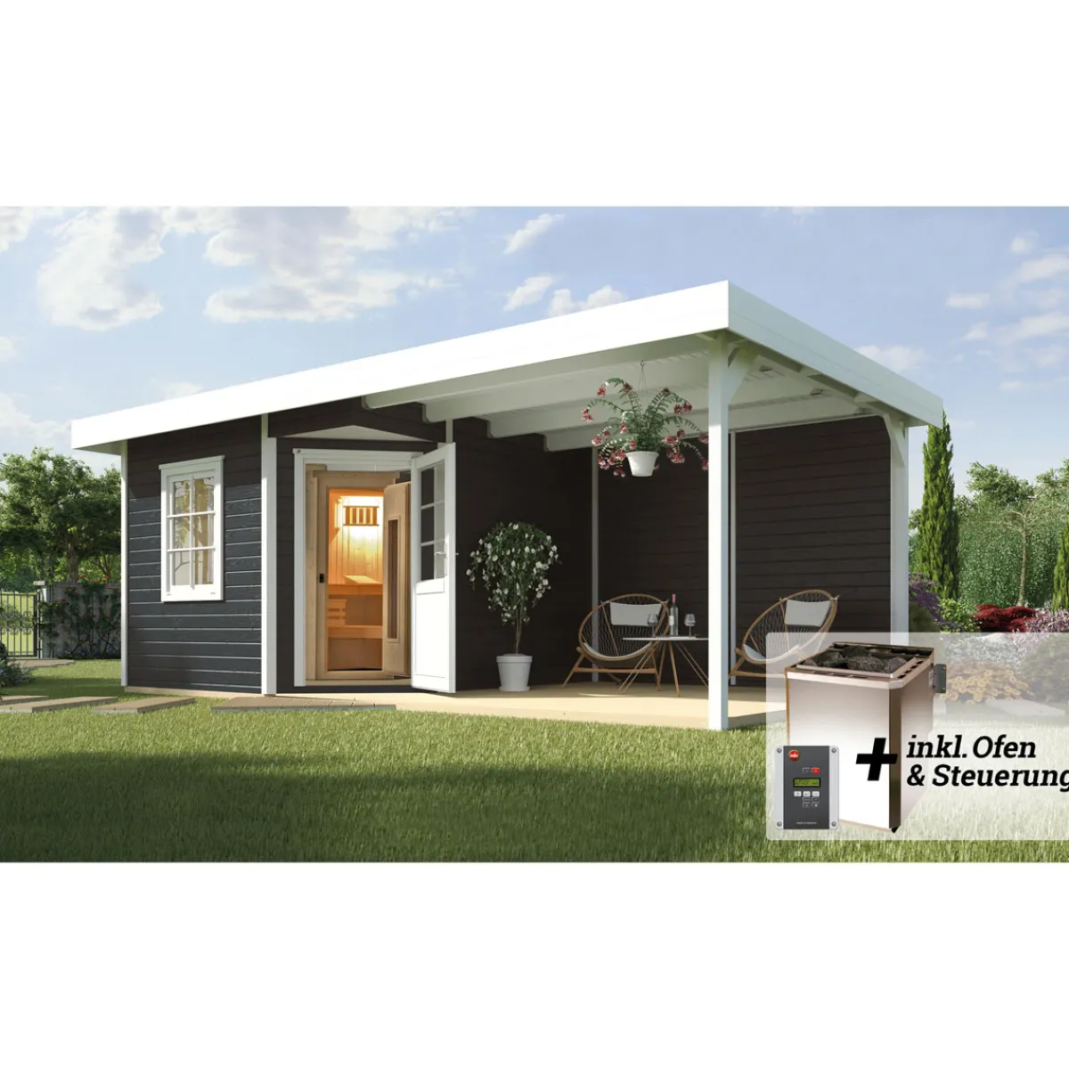 Weka Saunahaus Salo Größe 1 Sparset 7,5 kW OS anthrazit – Entspannung pur in Ihrem Garten