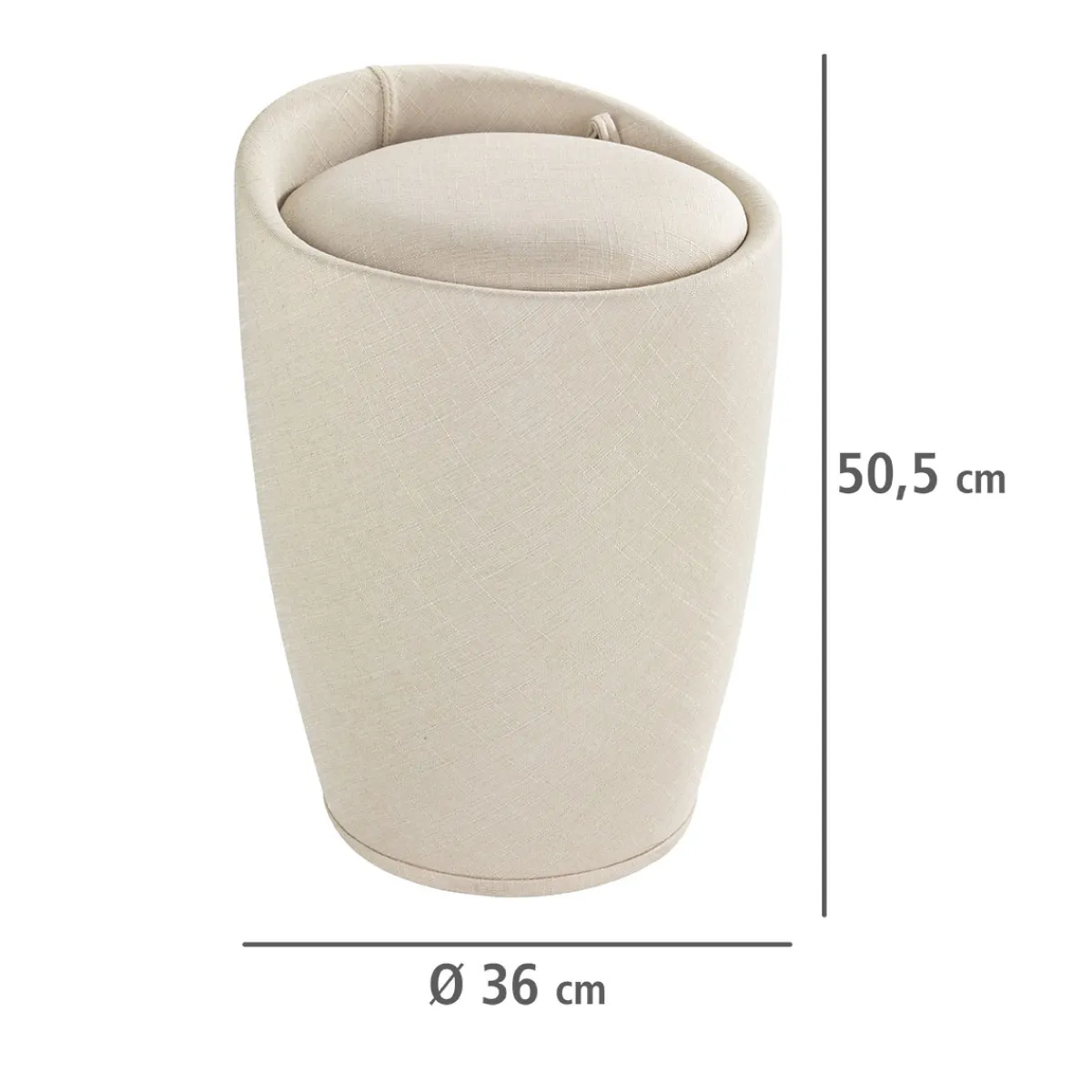 Der Wenko Hocker Candy Beige Leinenoptik mit Wäschesack ist ein vielseitiger und praktischer Badhocker, der nicht nur als Sitzgelegenheit dient, sondern auch als Wäschesammler verwendet werden kann.