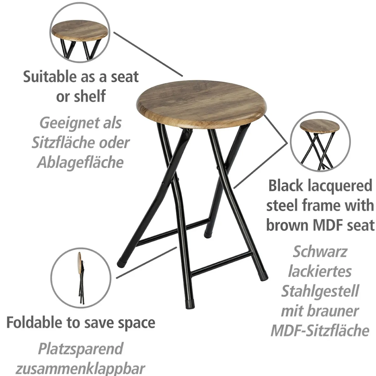 Der Wenko Hocker Forio ist ein wahres Multitalent und eignet sich perfekt als Beistelltisch, Pflanzenhocker oder auch als praktischer Sitzplatz im Badezimmer. Mit seinem modernen Design und der robusten Verarbeitung aus MDF und Stahl überzeugt er nicht nur optisch, sondern auch in Sachen Funktionalität.