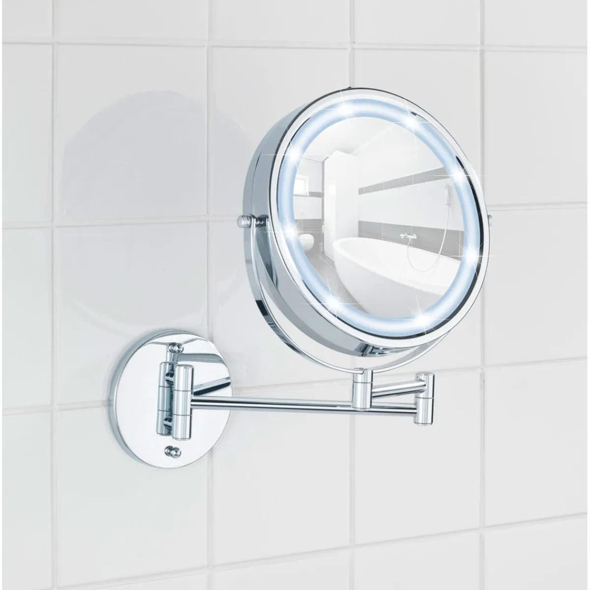 Mit dem Wenko Power-Loc LED Wandspiegel Lumi holen Sie sich ein praktisches und stylisches Accessoire in Ihr Badezimmer. Der Spiegel bietet eine 5-fache Vergrößerung und ist mit einer energieeffizienten LED-Beleuchtung ausgestattet. Das Beste daran: Die Montage erfolgt ohne Bohren!