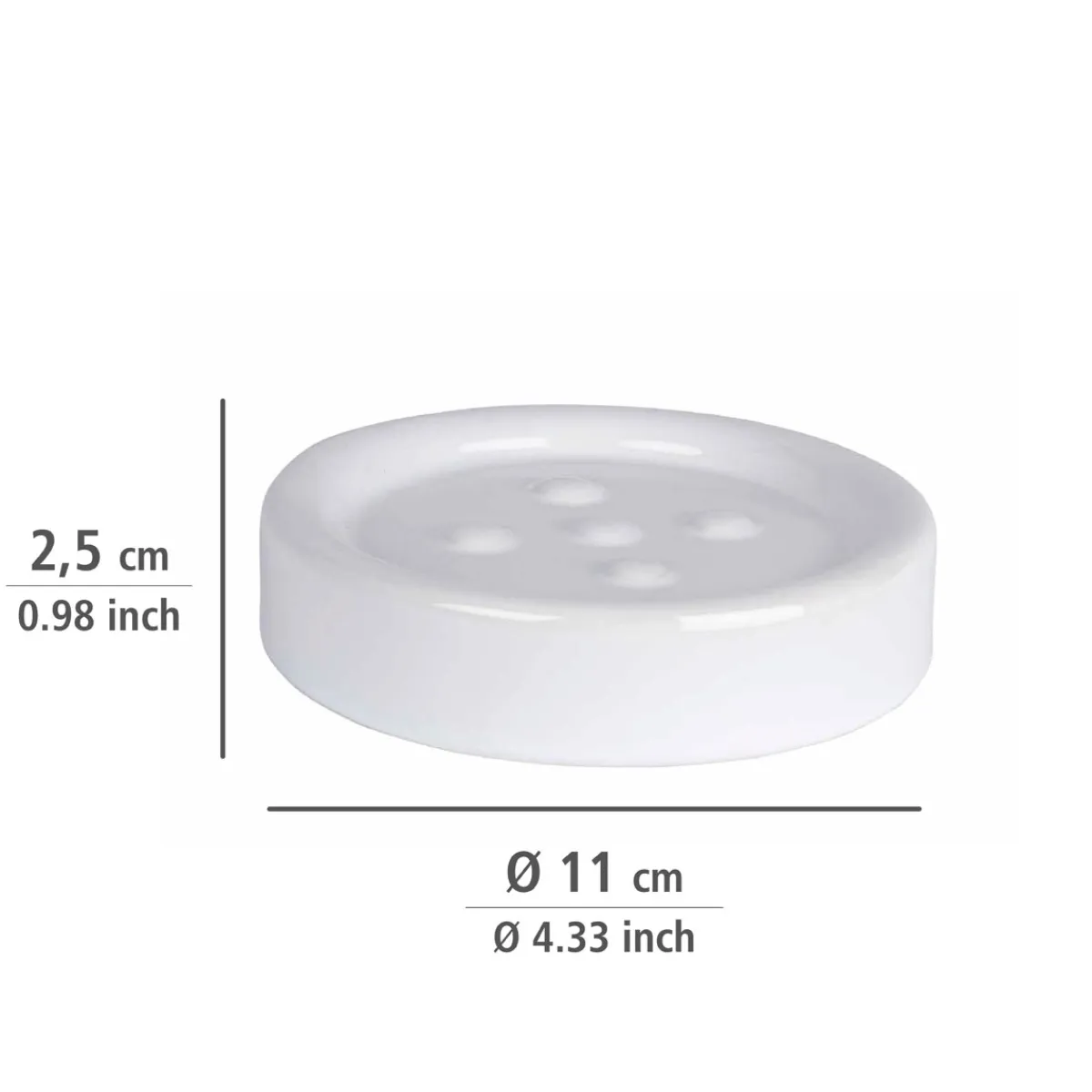 Die Wenko Seifenablage Polaris in Weiß überzeugt durch ihr modernes Design und ihre hohe Qualität. Mit ihrem Durchmesser von 11 mm passt sie perfekt in jedes Badezimmer. Die Abtropflöcher sorgen dafür, dass Ihre Seife immer trocken bleibt und somit länger hält. Bestellen Sie jetzt diese elegante Lösung für Ihr Badezimmer!