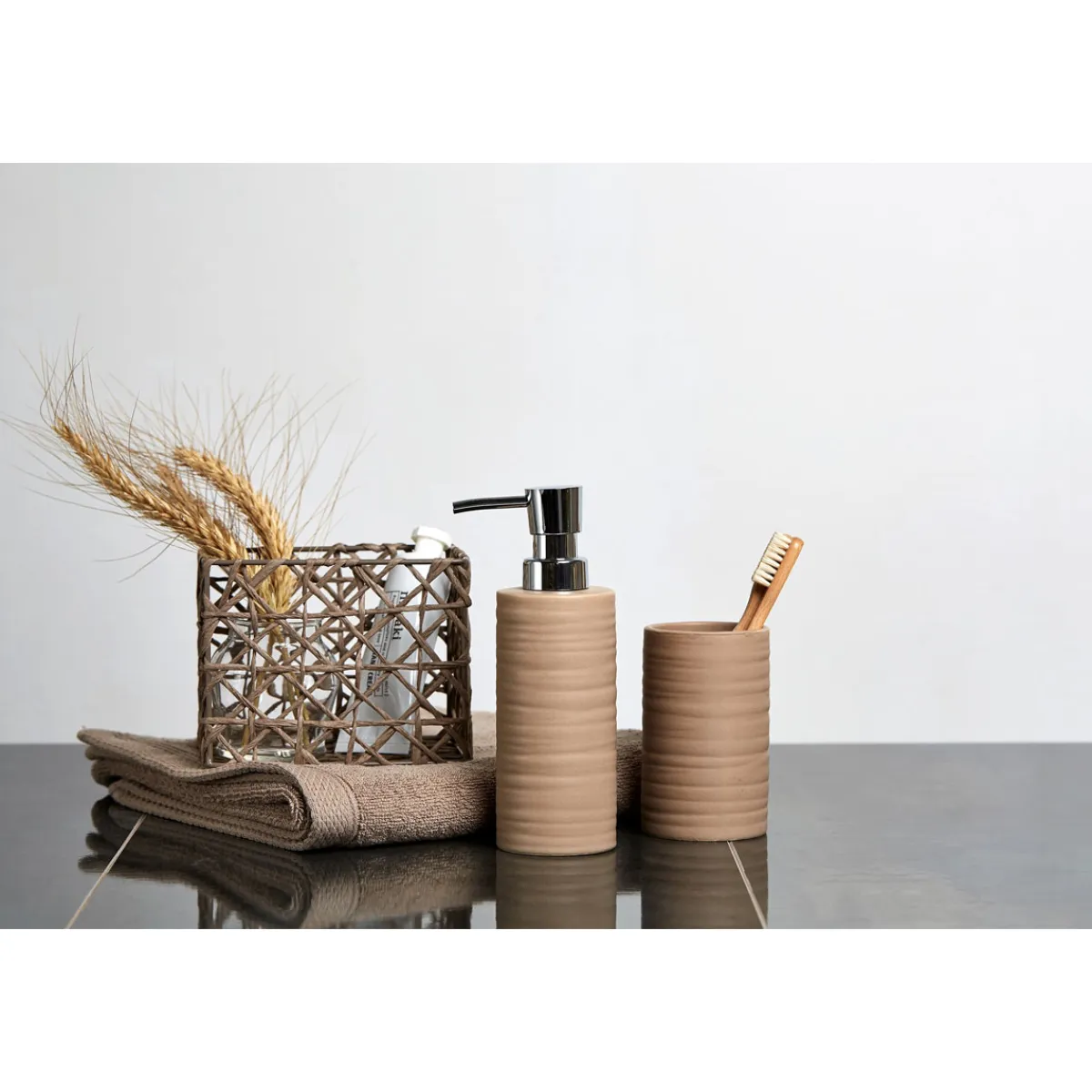 Mit dem Wenko Seifenspender Mila sand bringen Sie nicht nur Funktionalität, sondern auch Stil in Ihr Badezimmer. Das geriffelte Design und die runde Form machen ihn zu einem echten Hingucker.