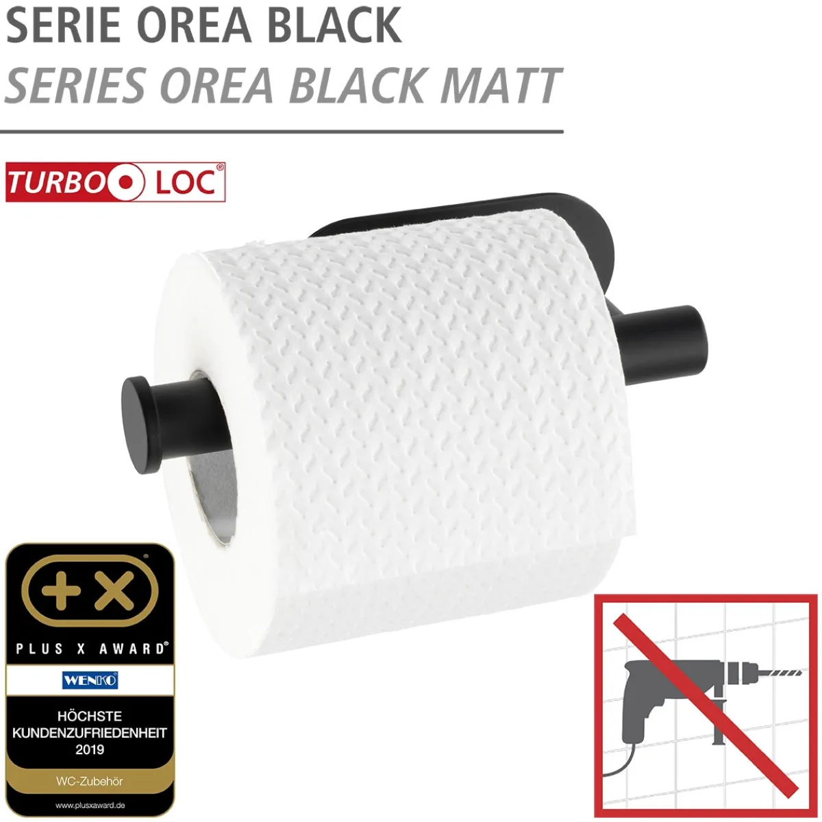 Wenko Turbo-Loc Edelstahl Toilettenpapierhalter Orea Black Matt – WC-Rollenhalter ohne bohren