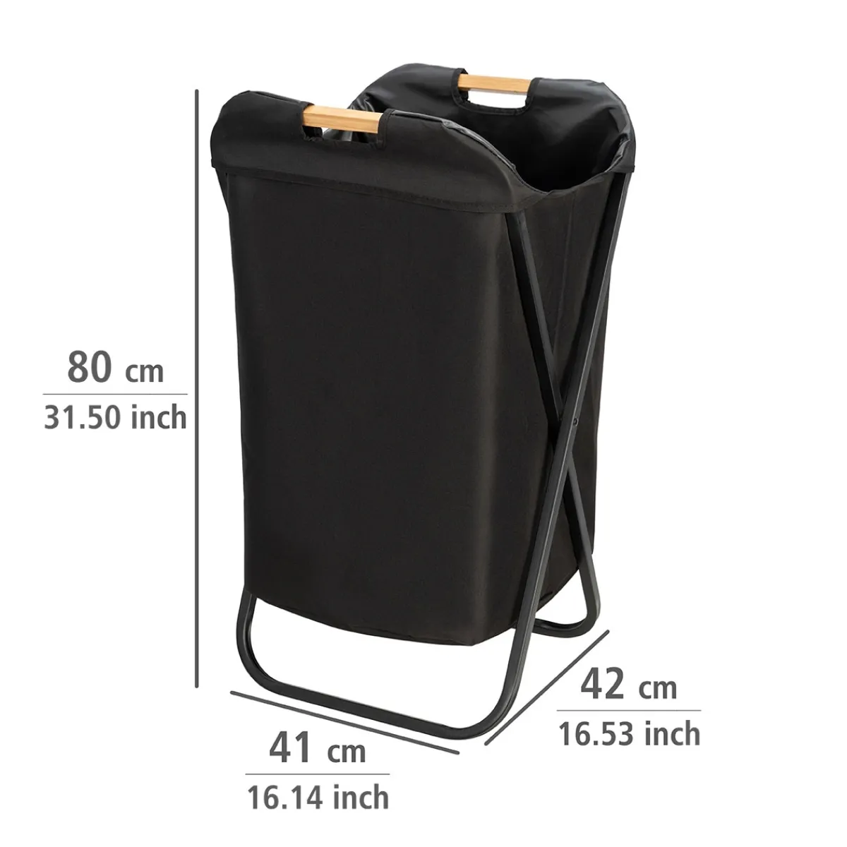 Der schicke schwarze Look des Wenko Wäschesammlers Loft passt in jedes Badezimmer oder Schlafzimmer. Mit seinen Bambus-Tragegriffen lässt er sich bequem transportieren und dank seines großen Volumens müssen Sie nicht ständig zur Waschmaschine laufen. Ein praktischer Helfer im Alltag!
