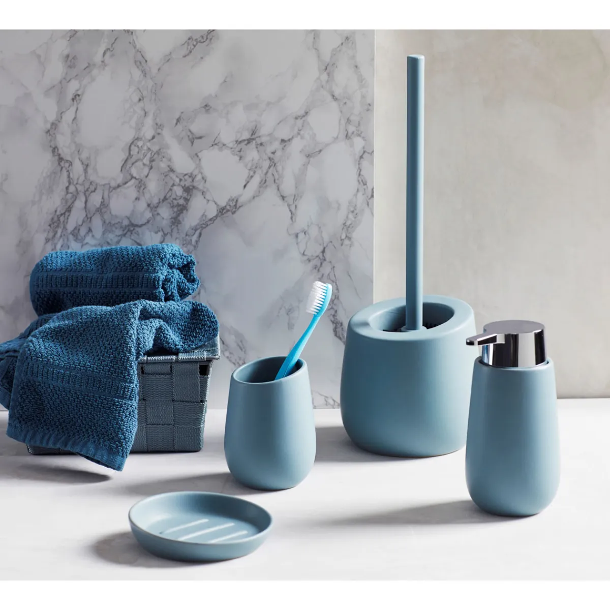 Mit der Wenko WC-Garnitur Badi in Blaugrau holen Sie sich nicht nur eine praktische, sondern auch stilvolle Lösung für Ihr Bad. Der runde Standmodell-Bürstenhalter aus Keramik überzeugt durch sein unifarbenes Design und ist bereits fertig montiert.