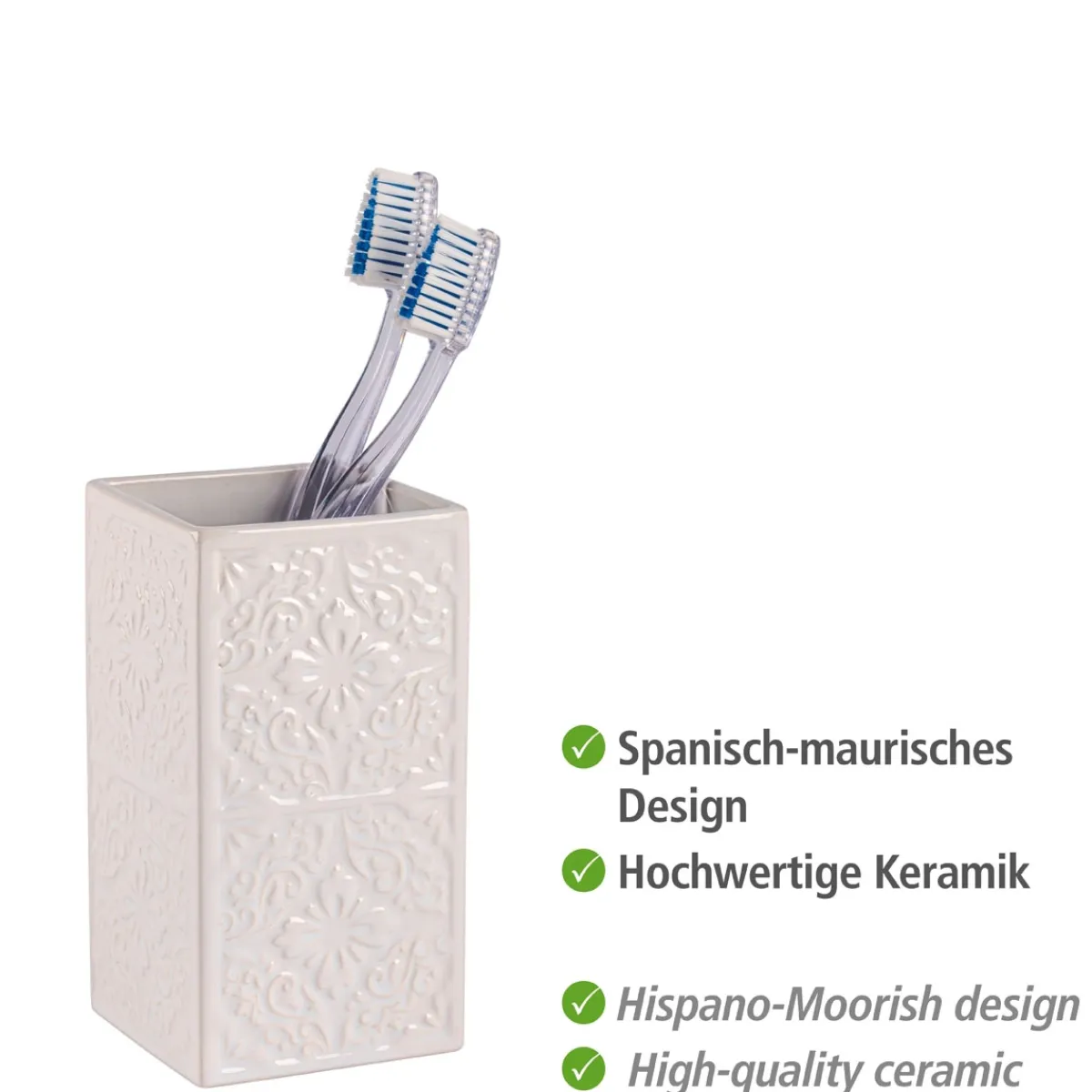 Wer auf der Suche nach einem stilvollen und zugleich praktischen Accessoire für sein Badezimmer ist, wird mit dem Wenko Zahnputzbecher Cordoba fündig. Die hochwertige Keramik-Qualität sorgt dafür, dass er lange Freude bereitet. Dank seines zeitlosen Designs lässt er sich zudem wunderbar mit anderen Badaccessoires kombinieren.