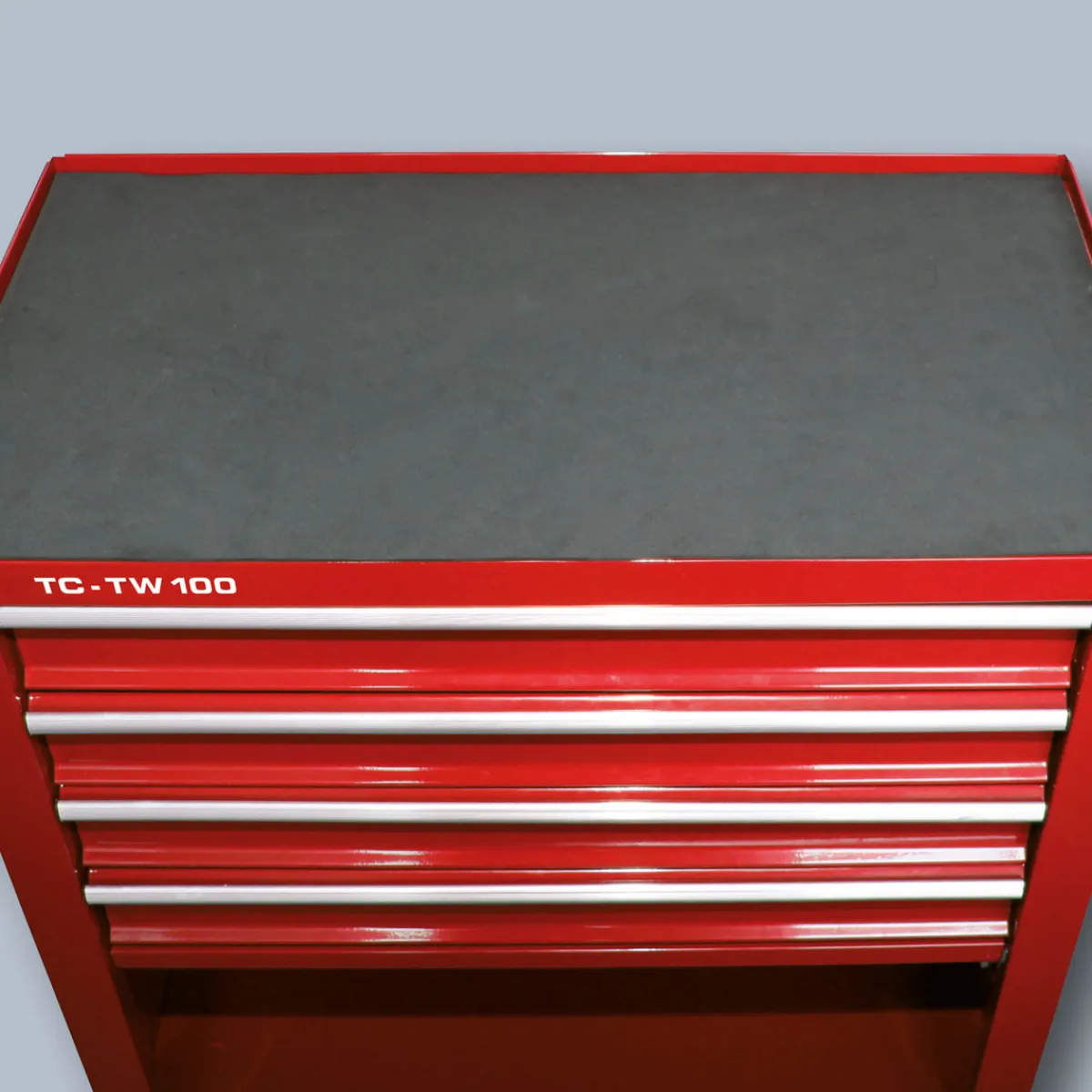 Der Einhell Werkstattwagen TC-TW 100 ist der ideale Helfer für alle Heimwerker und Profis. Mit seinen vier leichtgängigen Schubladen und einer Ablagefläche mit Auflagematte bietet er ausreichend Platz für Ihr Werkzeug. Die drehbaren Rollen aus Kunststoff, davon zwei mit Festellbremse, sorgen für eine einfache Fortbewegung des Wagens.