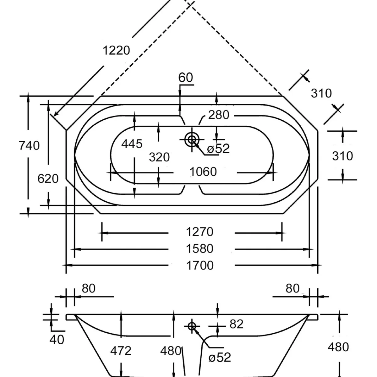 - Achteckwanne mit den Maßen 170 x 75 x 48 cm (BxTxH)