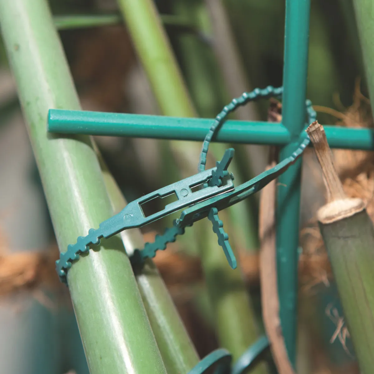 Sichern Sie Ihre Pflanzen mit den wiederverwendbaren und verstellbaren Windhager Pflanzenbindern. Die grüne Farbe passt perfekt in Ihren Garten oder auf Ihre Terrasse.