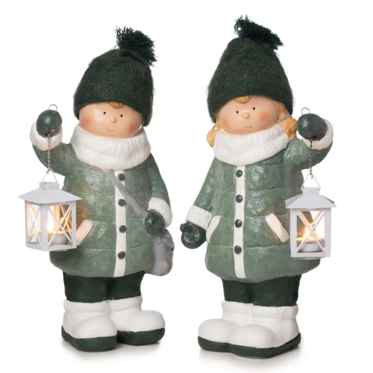 Winterkind mit Laterne 46cm grün weiss