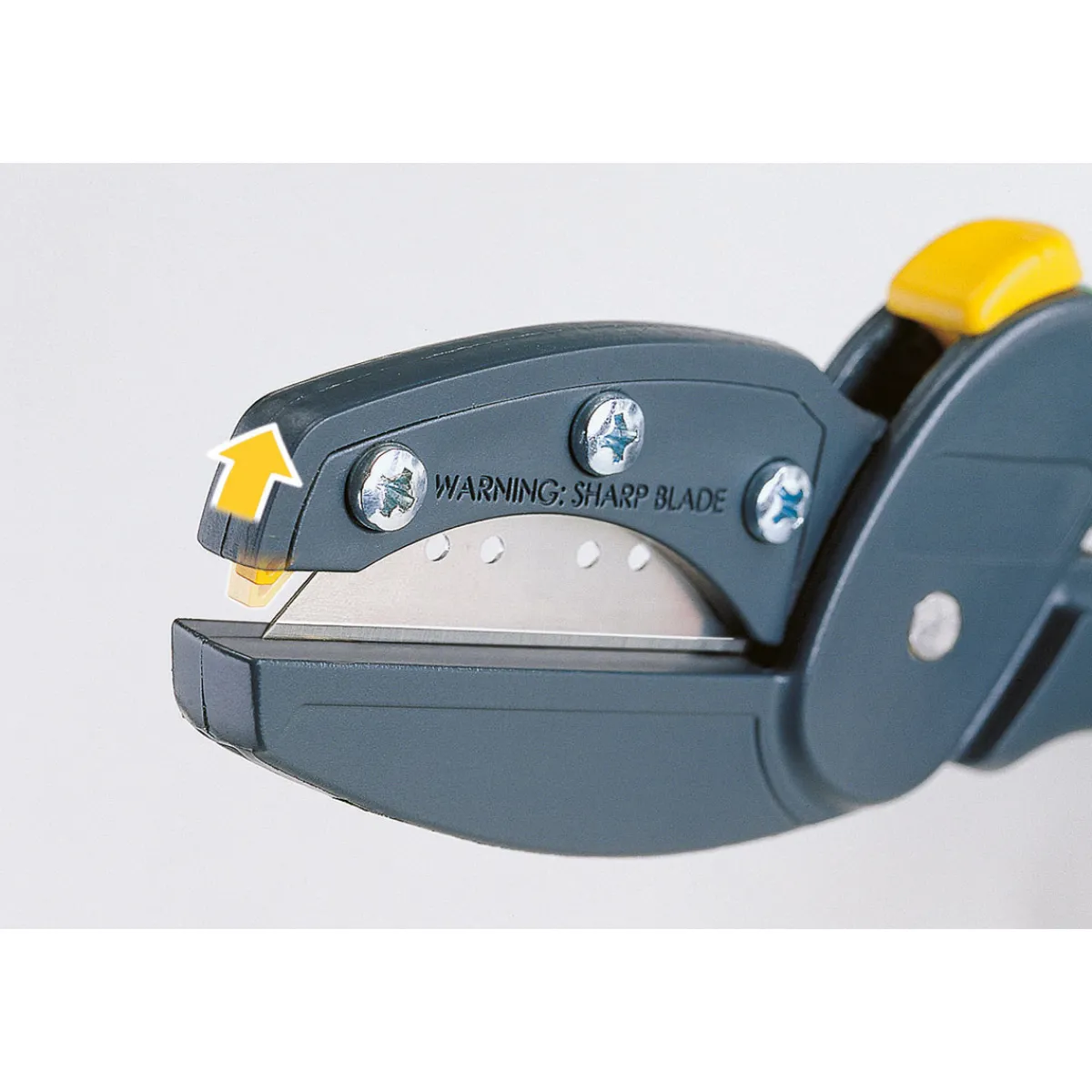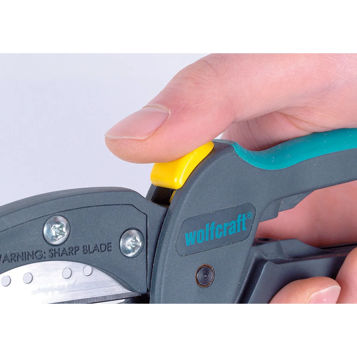 - integrierte Verschlussarretierung und Berührungsschutz an der Vorderseite der Klingenhalterung für maximale Sicherheit