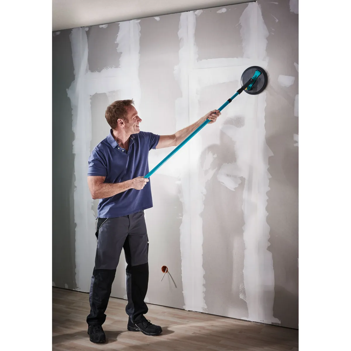 Das Wolfcraft Rundschleifer-Set ist ein unverzichtbares Werkzeug beim Bearbeiten von Gipskartonplatten. Mit dem ergonomischen Handgriff oder dem optionalen Teleskopstiel arbeiten Sie staubfrei und effizient. Die Klettaufnahme ermöglicht einen schnellen Wechsel der Haftgitterleinenaufsätze. Bestellen Sie jetzt das Wolfcraft Rundschleifer-Set im Online Shop!