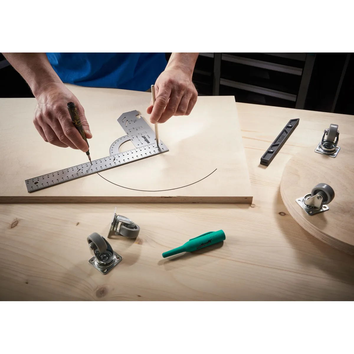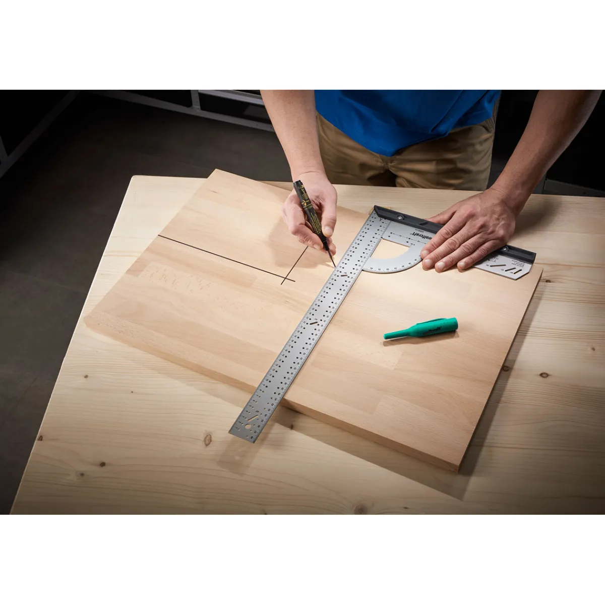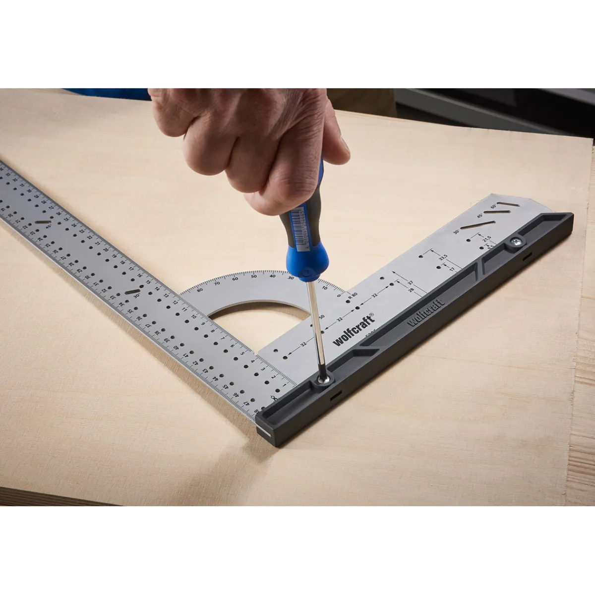 Mit dem Wolfcraft Universalwinkel wird präzises Arbeiten zum Kinderspiel. Ob auf der Baustelle oder im Handwerk, dieser Winkel ist ein unverzichtbares Werkzeug für Anreißarbeiten, Winkelmessungen und Zeichnungen.