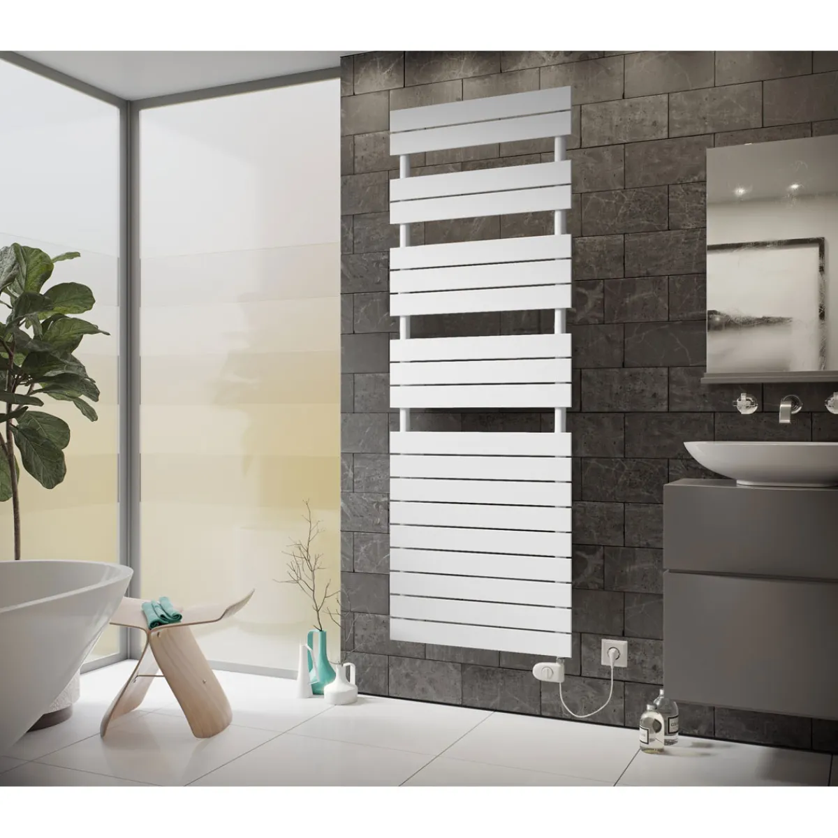 - Lieferumfang: Heizkörper, bereits montierter Heizstab, Wandhalterung und Montagematerial