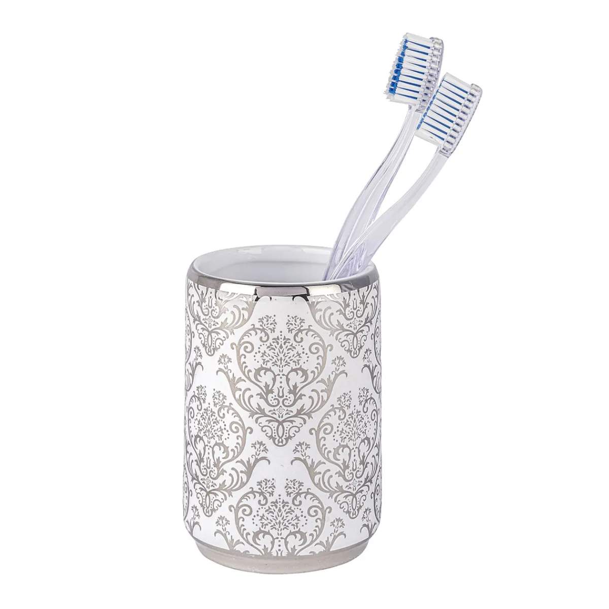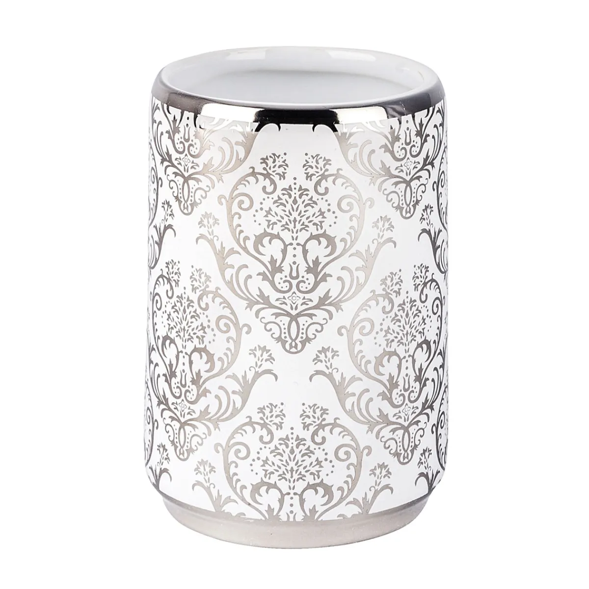 Der Wenko Zahnputzbecher Barock ist ein elegantes Accessoire für Ihr Badezimmer. Mit seinem silberfarbenen Ornament-Design und der runden Form fügt er sich perfekt in jede Einrichtung ein.