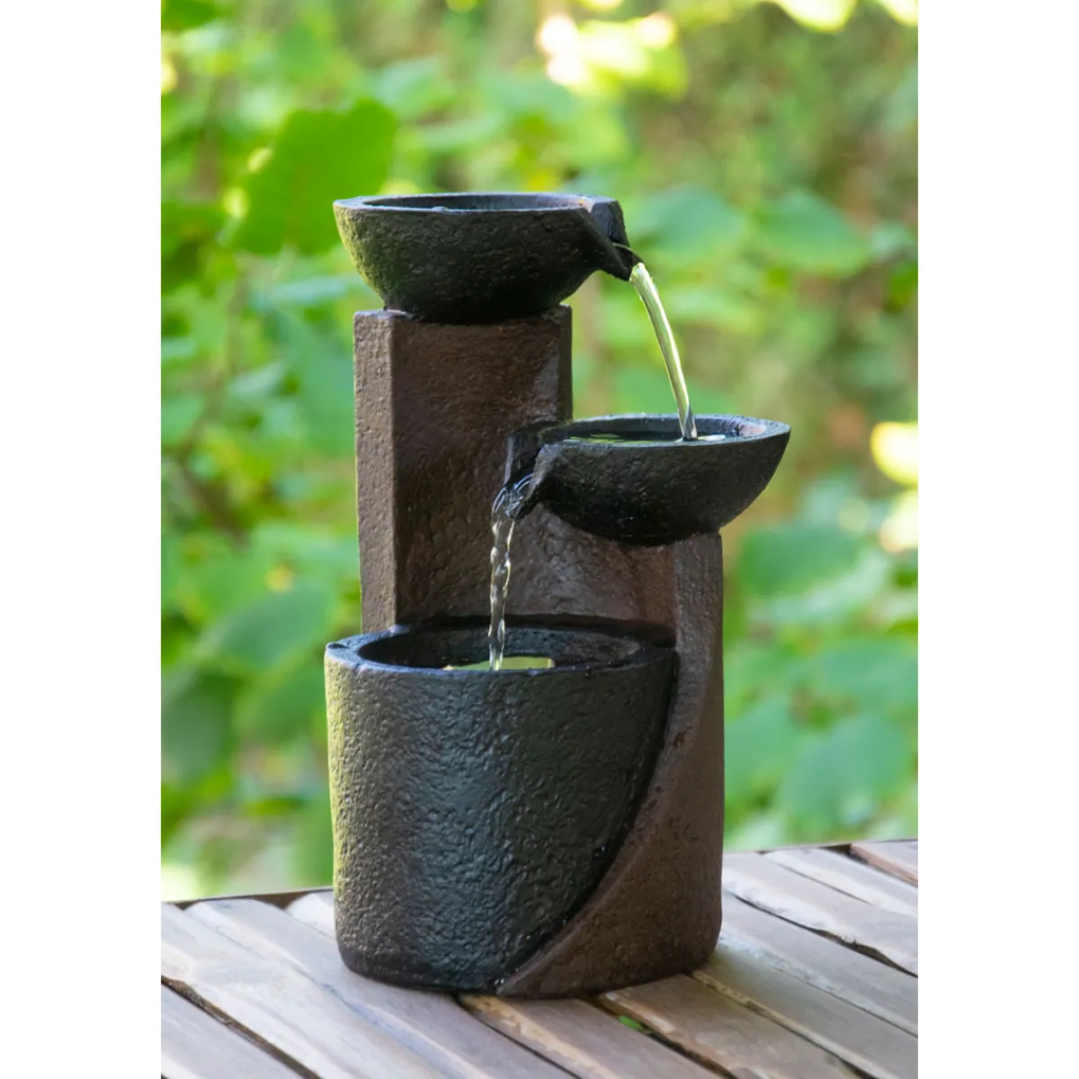 - Drei kunstvoll gestaltete Schalen bieten einen faszinierenden Wasserfluss für visuelle Entspannung