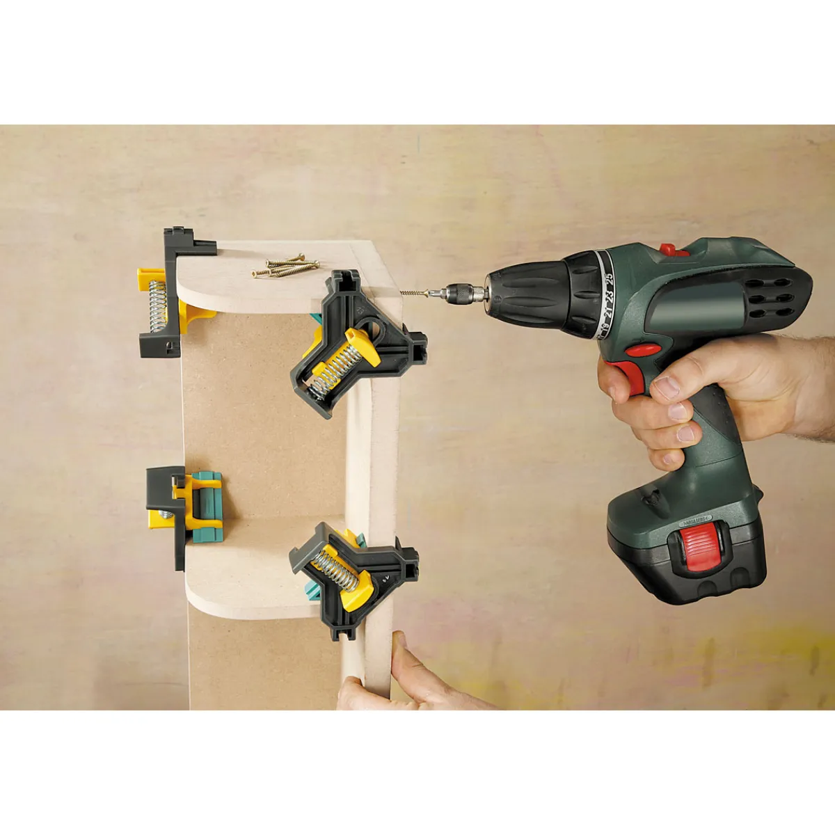 Die Wolfcraft Eckenspanner sind ideal für Handwerker und Heimwerker geeignet, die beim Verschrauben oder Leimen im rechten Winkel arbeiten möchten. Besonders praktisch ist die automatisch angepasste Spannweite sowie das robuste Design aus glasfaserverstärktem Kunststoff.