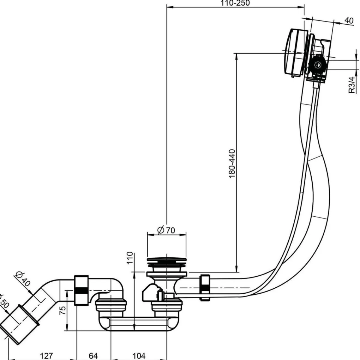 - Ablaufanschluss Ø 40 / 50 mm, Bowdenzuglänge 650 mm