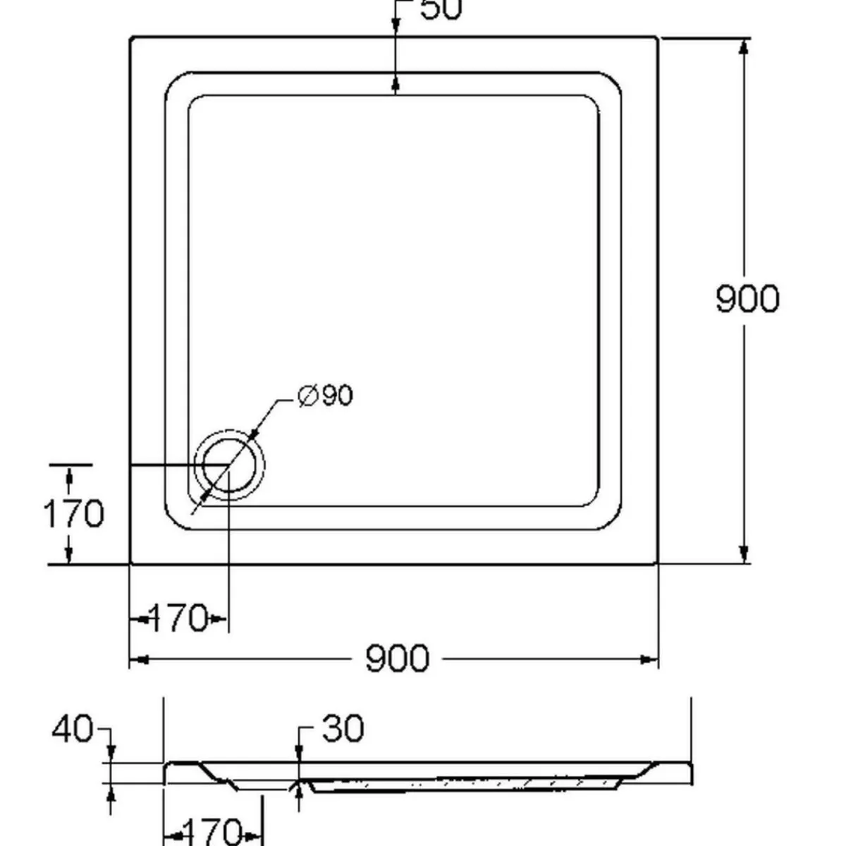 Ottofond Acryl-Duschbecken quadratisch 90 x 90 x 3 cm weiß