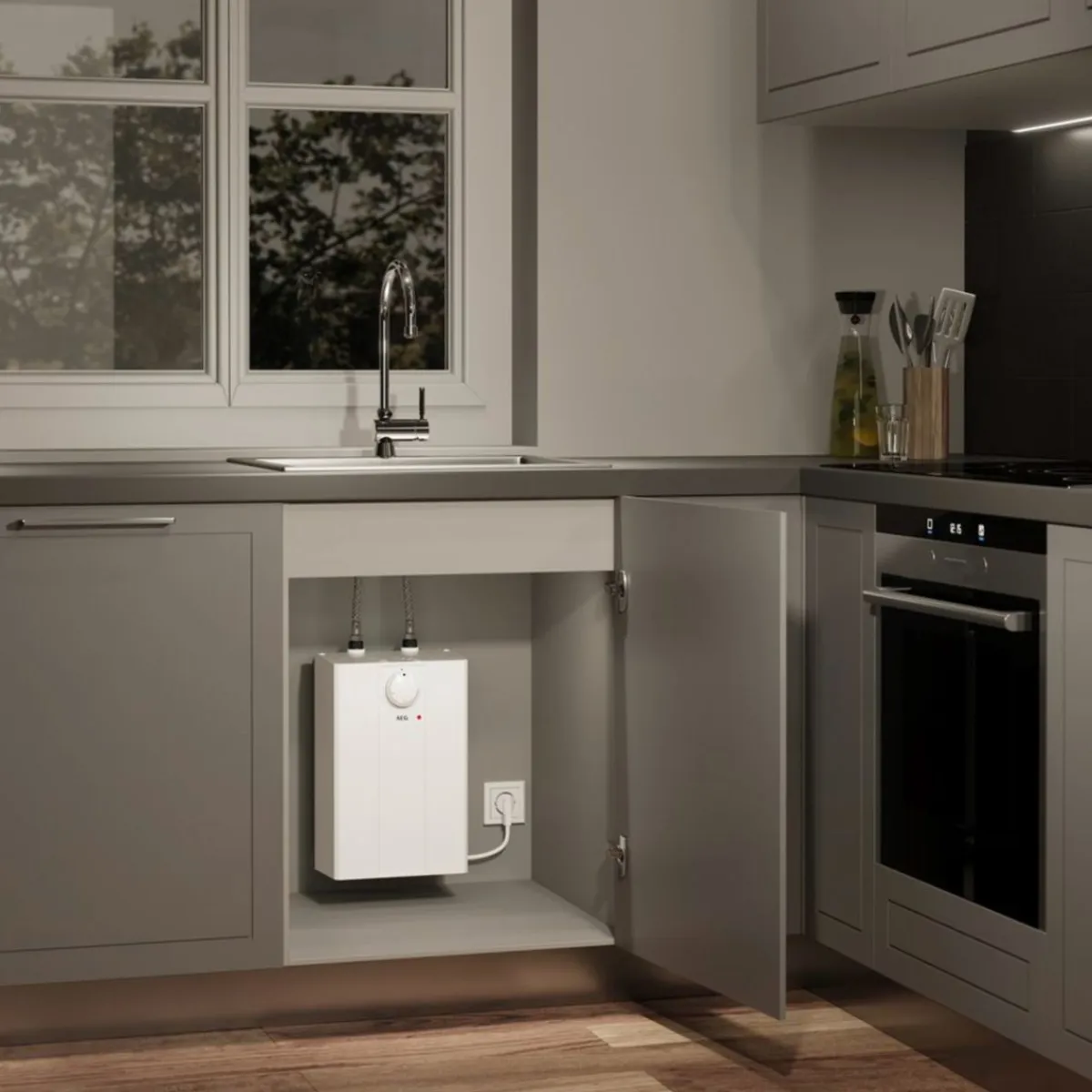 Der AEG Klein-Warmwasserspeicher HUZ 5 Basis ist die ideale Lösung für alle, die in der Küche oder im Badezimmer schnell warmes Wasser benötigen. Mit seinem kompakten Design und einer Aufheizzeit von nur neun Minuten ist er besonders effizient und spart Platz.