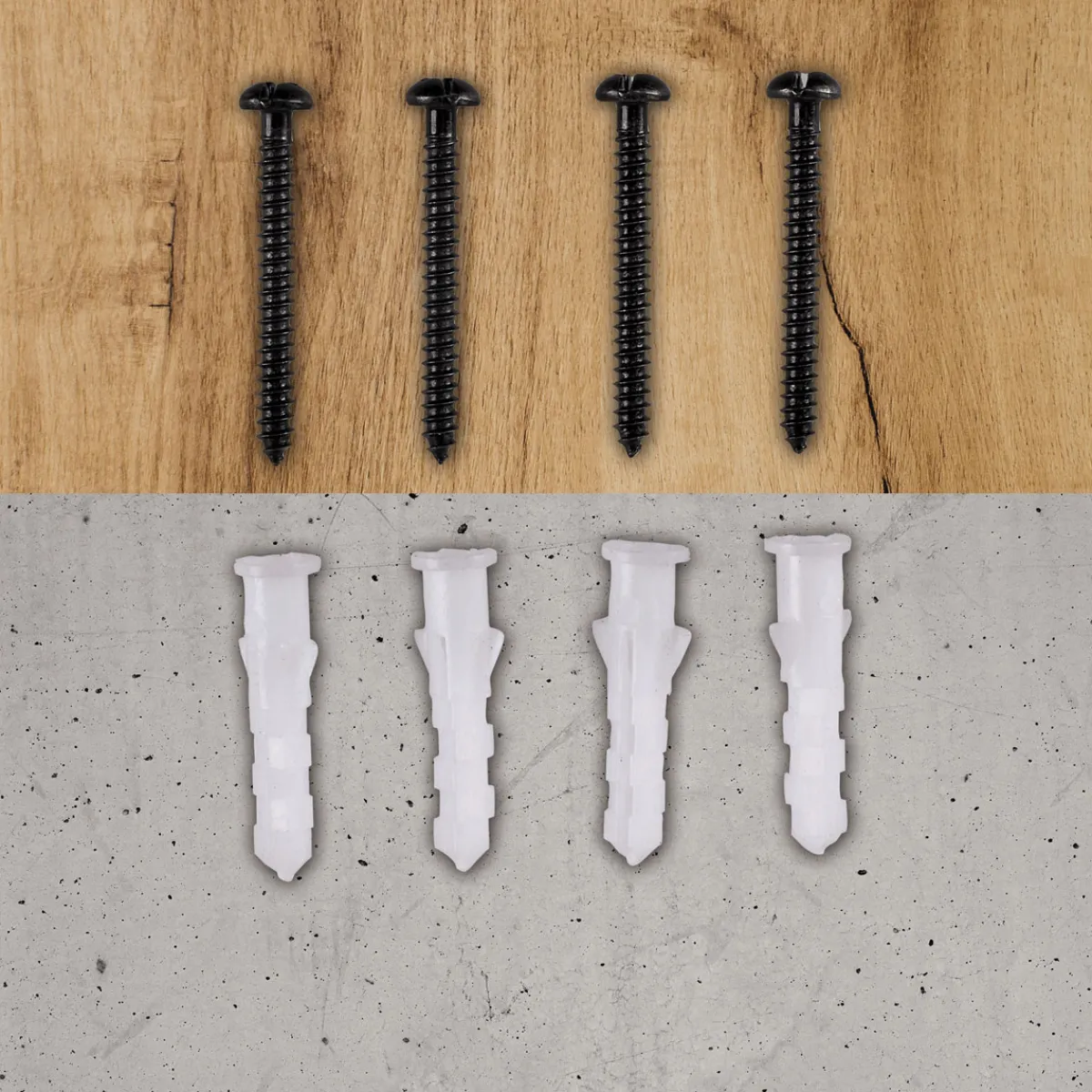 - Inklusive 4x Schrauben und 4x Dübel für eine einfache Montage ohne zusätzliches Zubehör