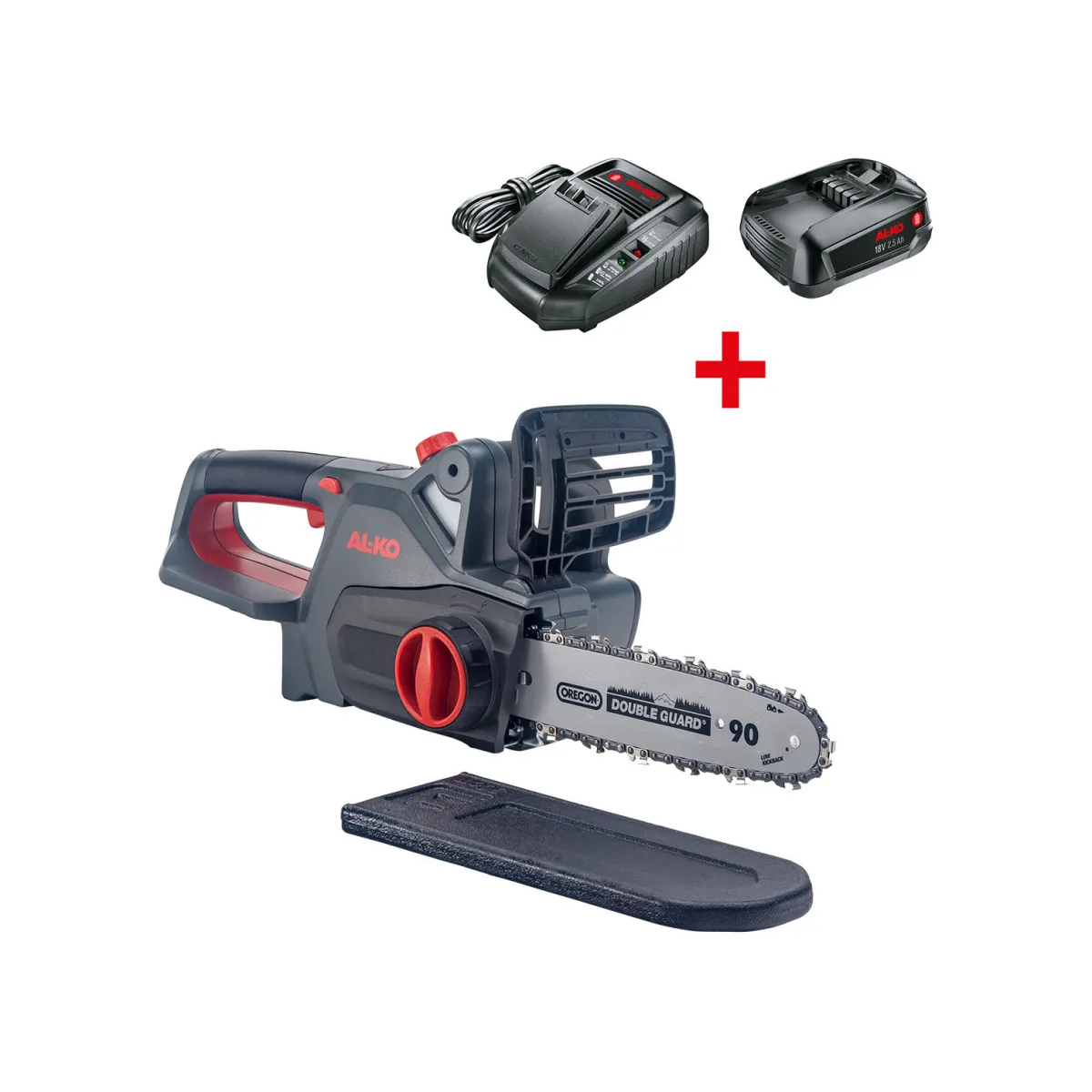 - – Lieferumfang: Kettensäge, Kette, Schiene, Akku, Ladegerät