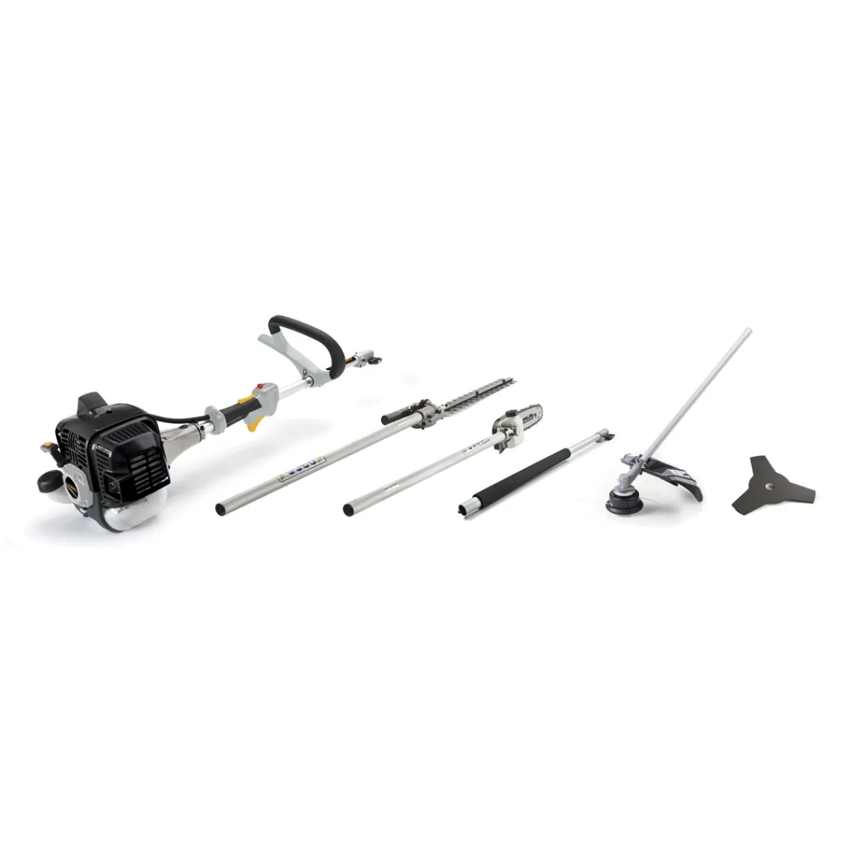 - Ausstattung: Rasentrimmer, Motorsense, Hochentaster, Heckenschere