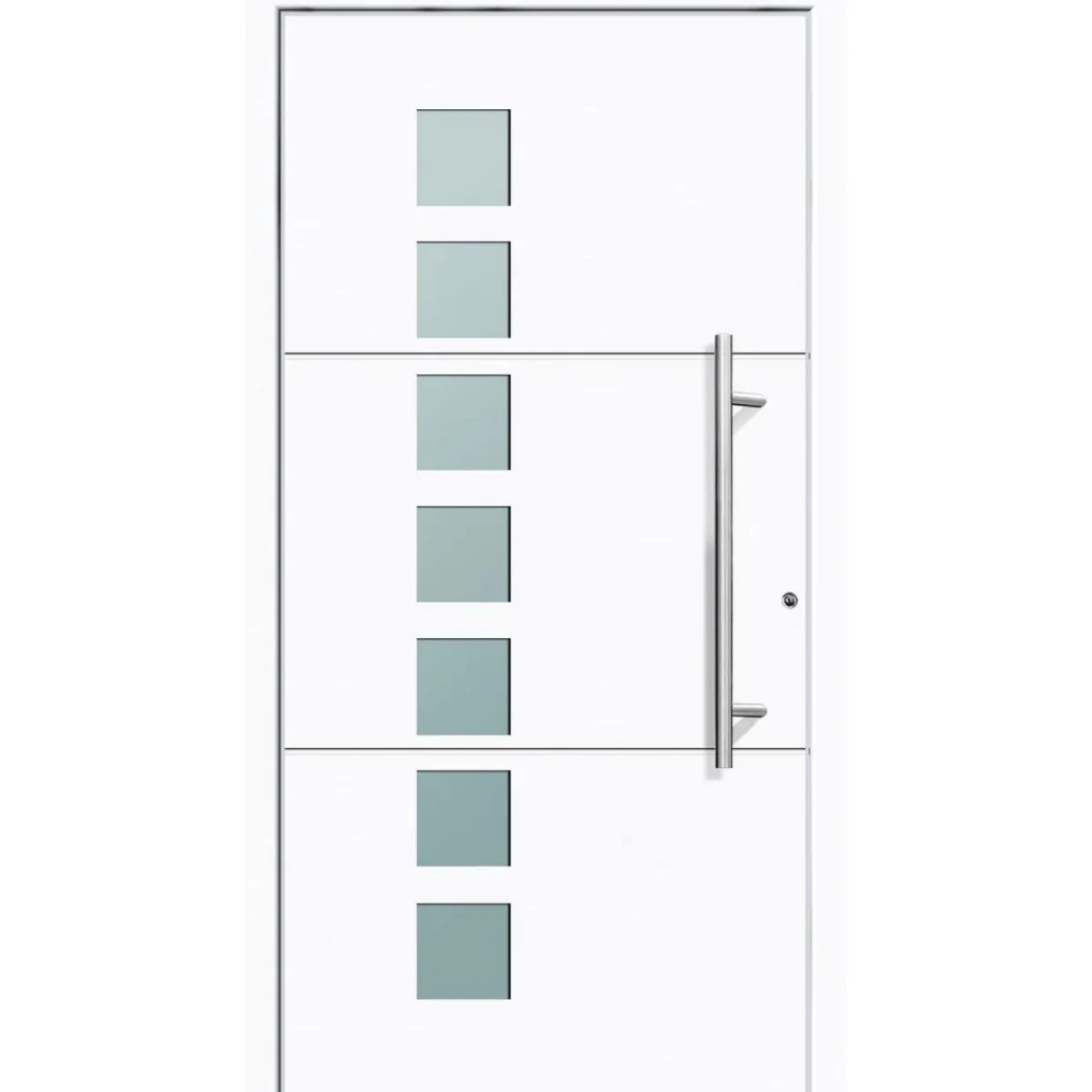 | Lieferumfang: | inkl. Griffset mit 800 mm Stoßgriff, Innendrücker, Sicherheits-Schließzylinder, 5 Schlüssel, Sicherheits-Kernziehschutzrosette |