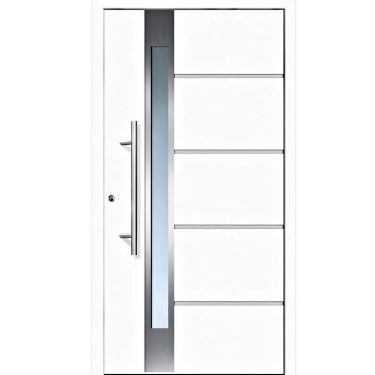 Sicherheitshaustür „Exklusiv“ inkl. Griffset!100% Aluminium mit hochwertiger Pulverbeschichtung – ohne Stahl, ohne Verwendung von Kunststoff oder Holz, ohne Dekorfolie auf der OberflächeTechnische Spezifikationen:- Ud-Wärmedämmwert 0,95 W/m²K- 75 mm beidseitig flügelüberdeckende wärmegedämmte Füllung ohne sichtbares Flügelprofil- Aluminium Profil Bautiefe 77 mm- Thermisch getrennte Bodenschwelle aus Aluminium mit verbesserter Wasserdichtigkeit- 3-fach Schwenkhaken-Sicherheitsverriegelung- 2 Stück dreidimensional verstellbare Rollenbänder- 2 Stück Aufhebelsicherungen (Bandseitensicherung)- 4-fach Isolierverglasung VSG 33,4 (P4A), innen und außen satiniert- inklusive Griffset mit 80 cm Stoßgriff, Innendrücker, Sicherheits-Schließzylinder sowie 3 Schlüsseln, Sicherheits-Kernziehschutzrosette Weitere Wünsche wie Sonderfarben, Sondermaße und Zubehör (Spione, Smart-Home, Griffe) erhalten Sie auf Wunsch mit ausführlicher Beratung nur in unseren Märkten! Wichtiger Hinweis: Diese Haustür ist eine Sonderanfertigung, das Widerrufsrecht ist ausgeschlossen (ausgenommen Mängel).