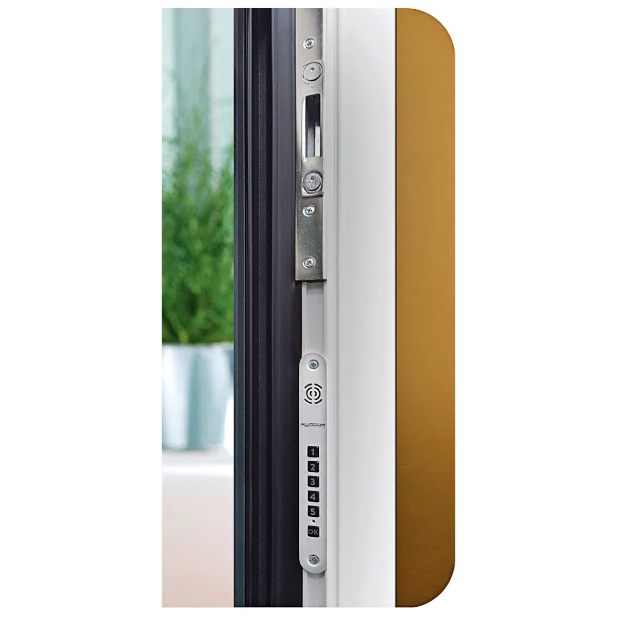 Ud-Wert 0,95 W/m²K, inklusive elektronischem Alarm, Automatikfunktion und Magnettechnik, inklusive Stoßgriff 80 cm, Drücker, Sicherheitsschließzylinder mit 5 Schlüsseln und Sicherheits-Kernziehschutzrosette.