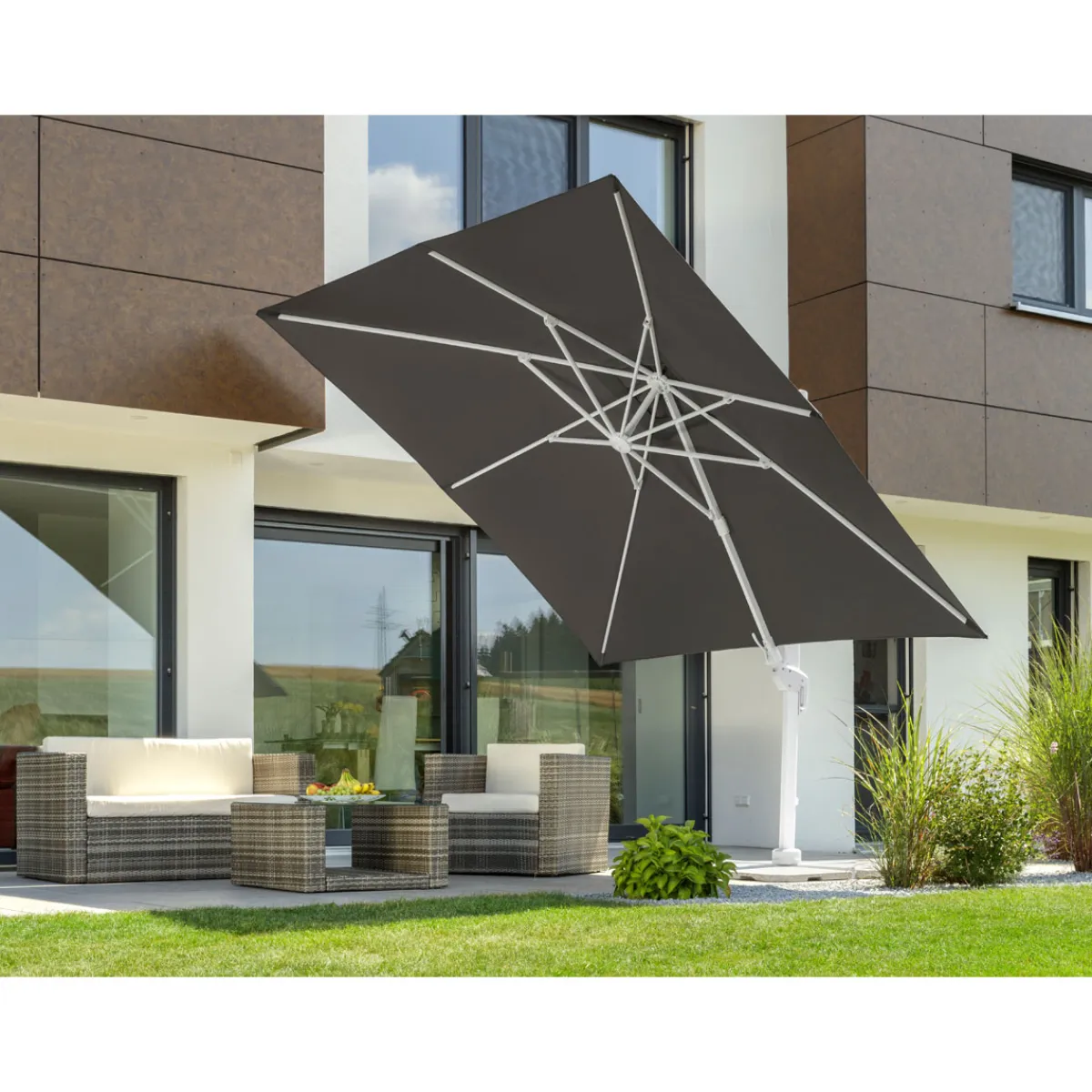 Schneider Schirme Ampelschirm Rhodos Twist Bianco 300 x 300 anthrazit
