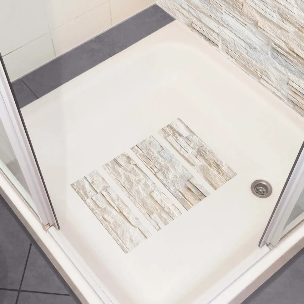 MySpotti Antirutschaufkleber Bruchstein beige 4er-Set – Sicherheit und Stil für Ihr Badezimmer